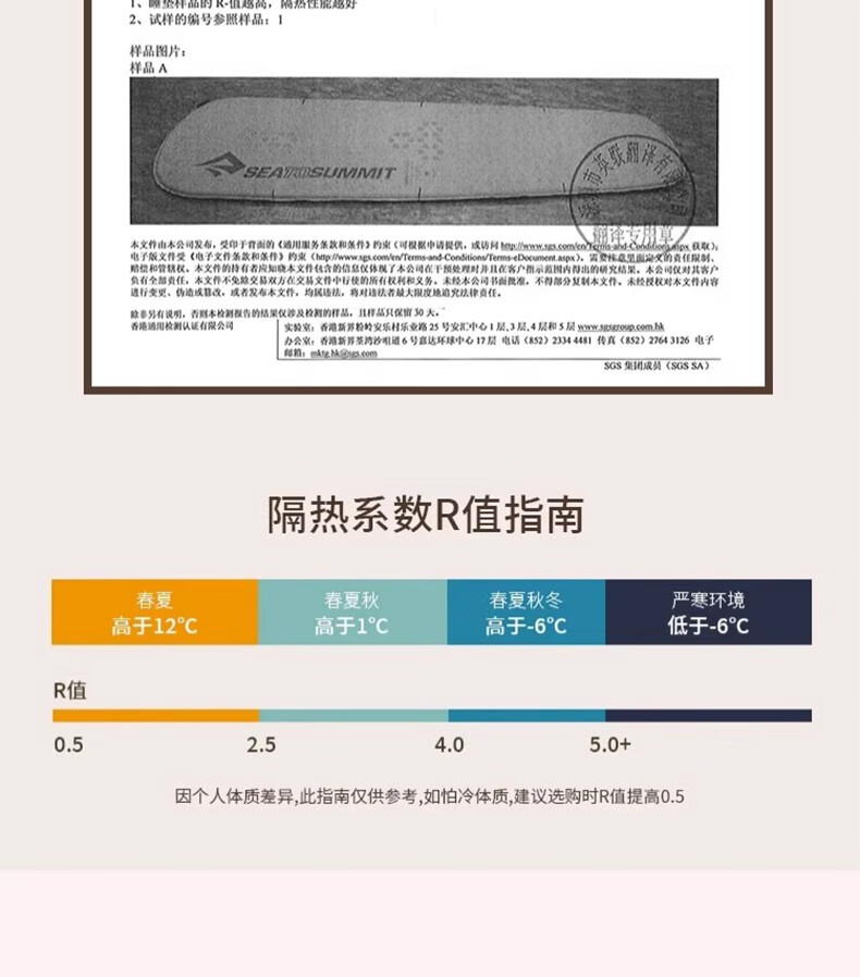 SEA TO SUMMIT STS自充气睡垫户外露营充气床加厚加宽大码豪华舒适型充气垫子 舒适型标码R值4.3厚7.5cm