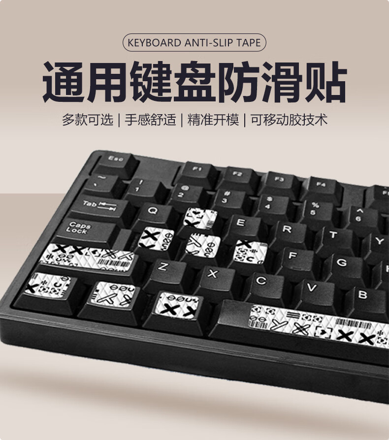 收到了,贴纸很实用,键位可以自由调整,防滑效果不错,打字时手感更稳了。用了一段时间也没脱落。