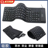 YWZR新款USB便携超薄彩硅胶可折叠弯卷有线软键盘静音防水笔记本台式 85键经典黑 套餐一