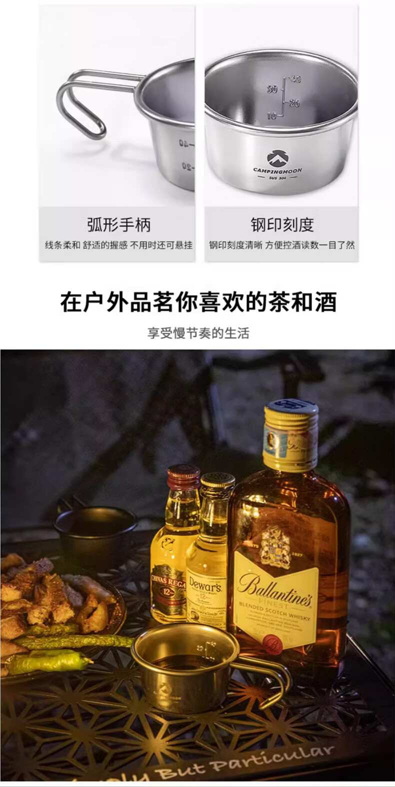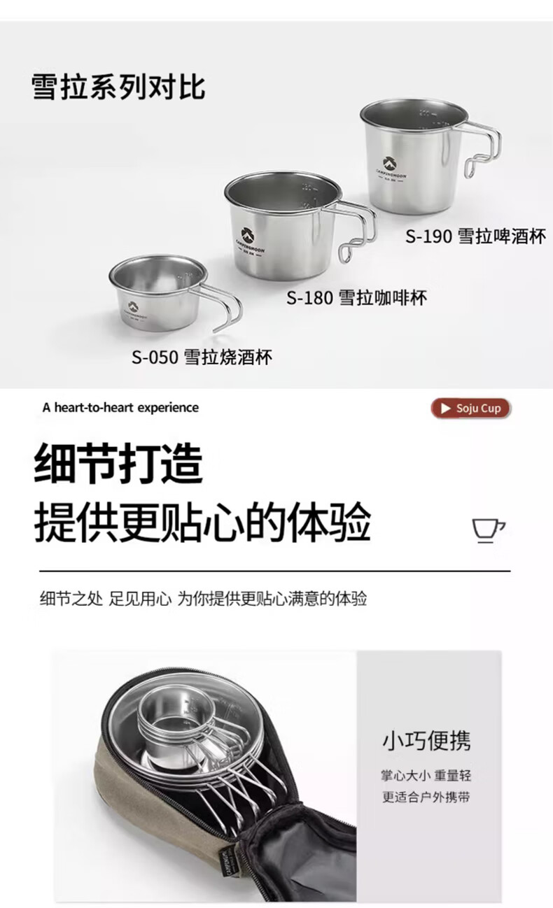 CAMPINGMOON柯曼304不锈钢雪拉烧酒杯小号酒杯多用户外轻量茶杯迷你雪拉杯 【S050雪拉烧酒杯】*1个