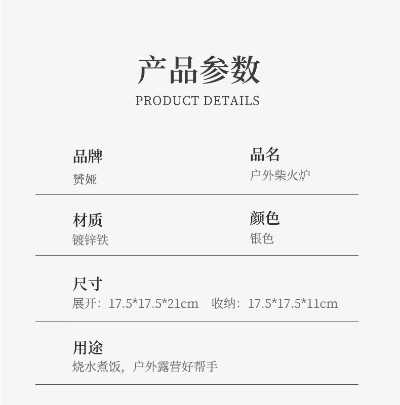 很简洁很方便的一款户外柴火炉。试了一下,还可以做酒精炉用。简易实用。也很轻巧。没啥重量。带着旅行露营特别好使。组装更容易。很喜欢!物流很给力。