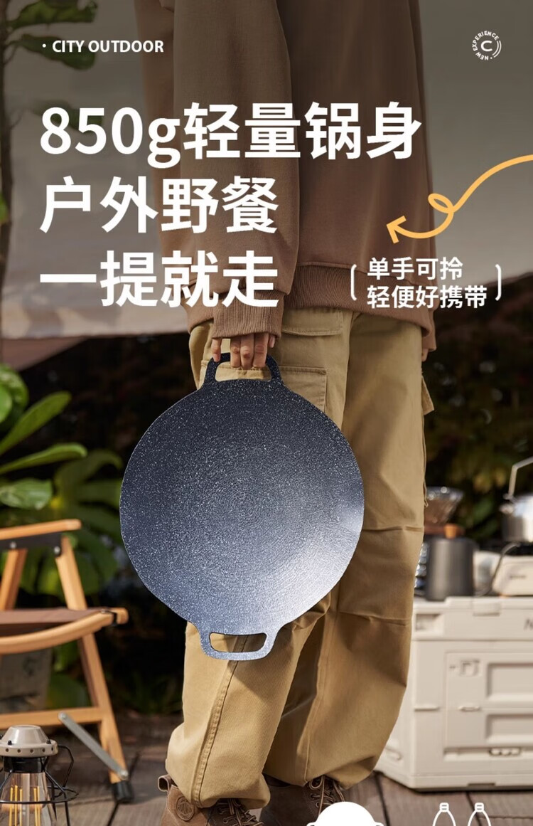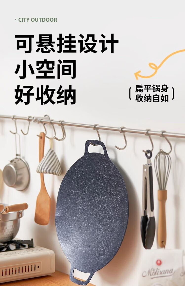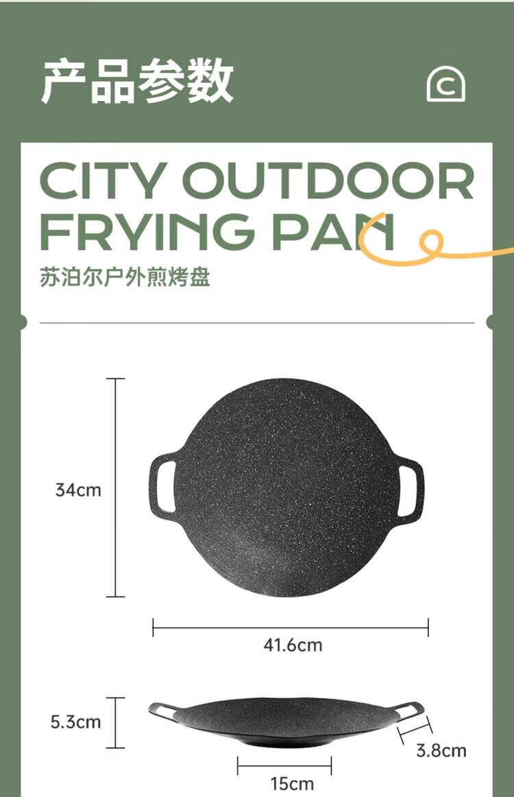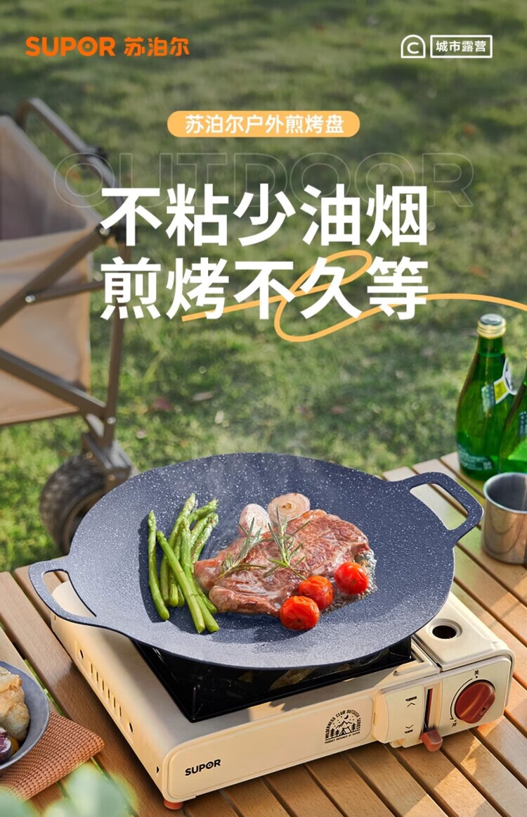 苏泊尔(SUPOR)户外烤盘便携韩式煎烤烤肉盘露营铁板烧烤盘不粘家用 34cm烧烤盘