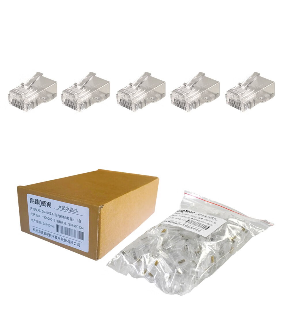 海康威视超五类水晶头网线头六类RJ45水晶头网线接头非屏蔽水晶头安防设备 海康威视六类水晶头100个/盒