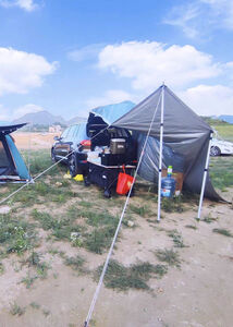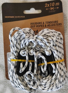 之前老的天幕在外面露营的时候刮了一阵邪风~~绳子断了、索性买了迪卡侬的试试、确实挺粗的、看起来很牢固、就是价格有点小贵~~
