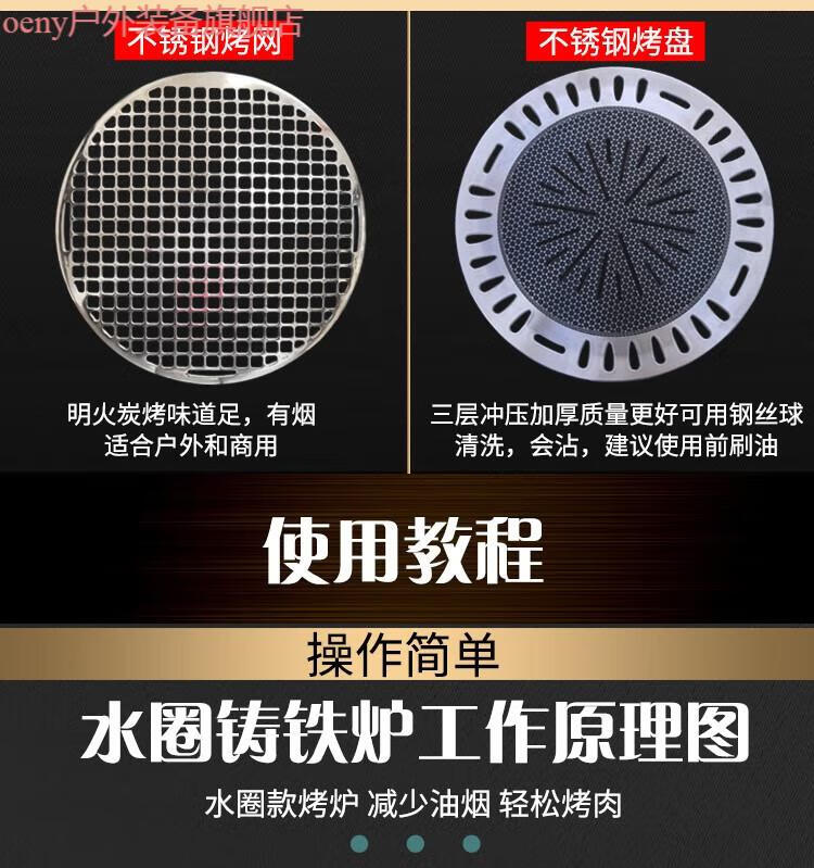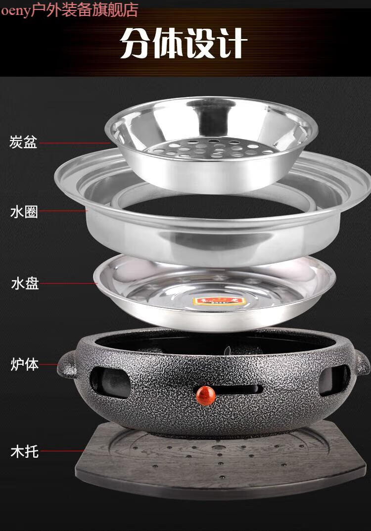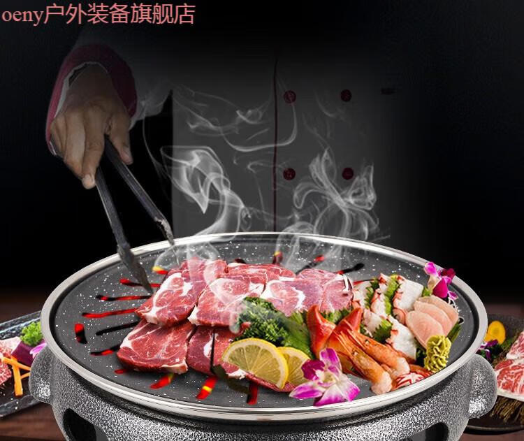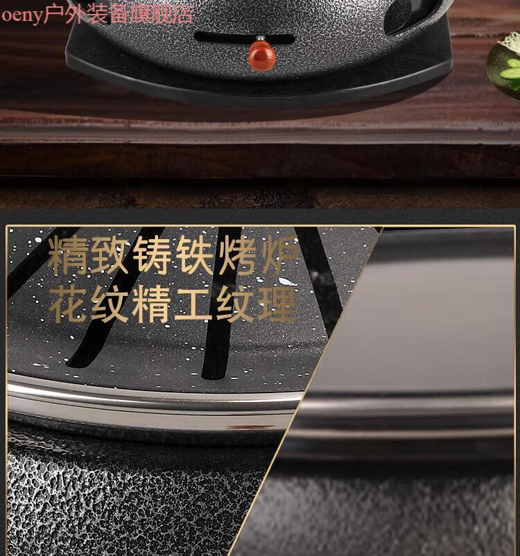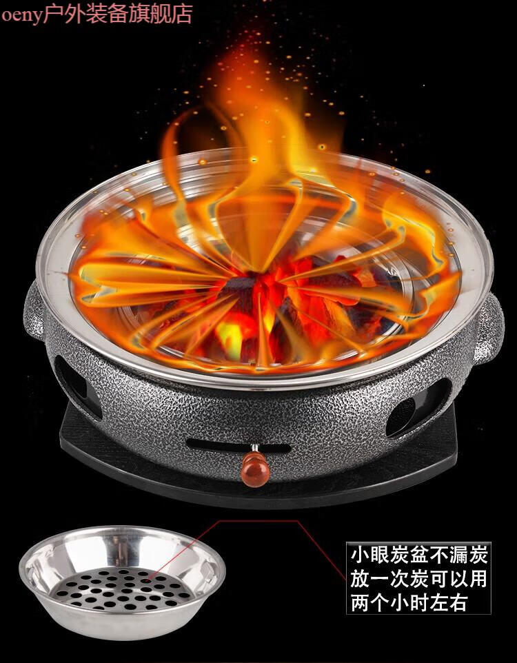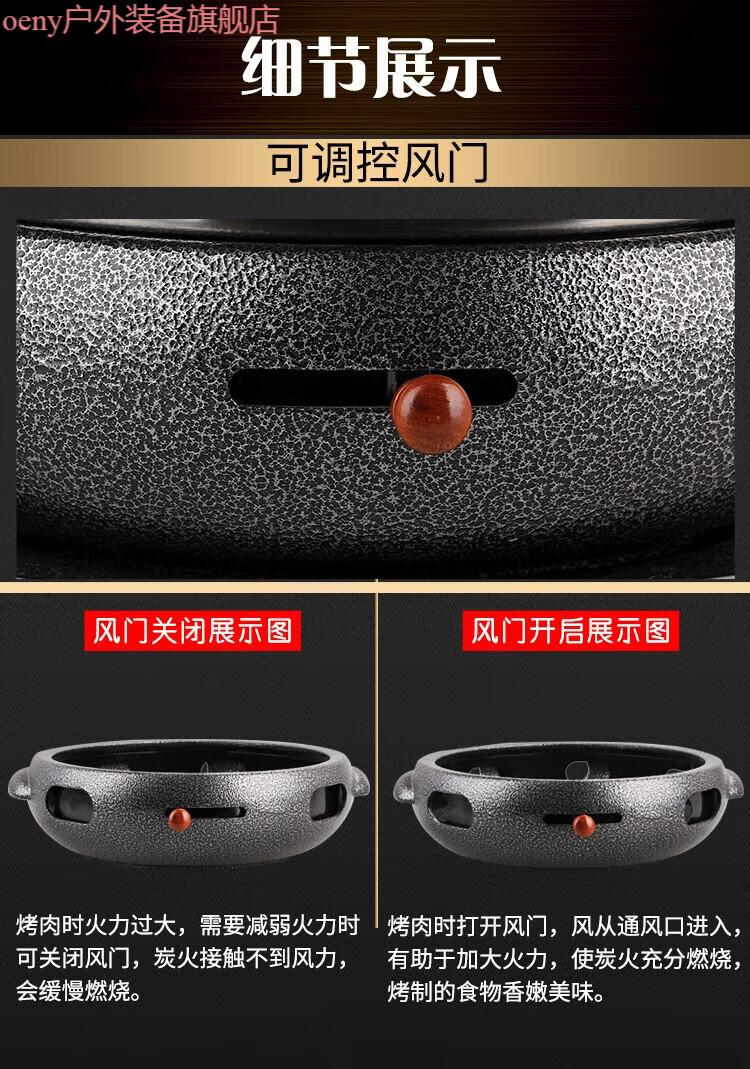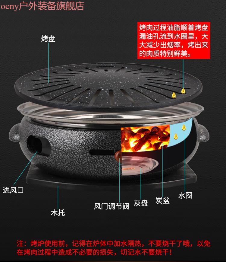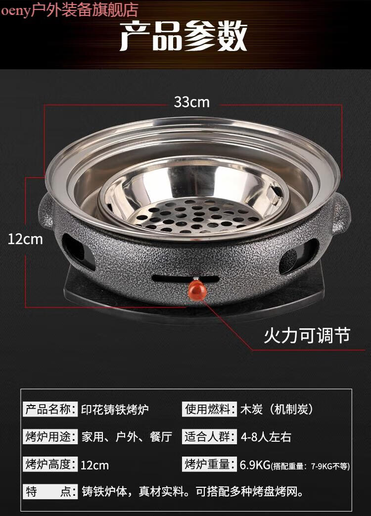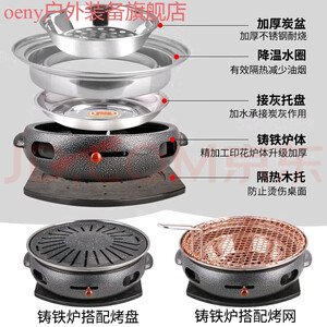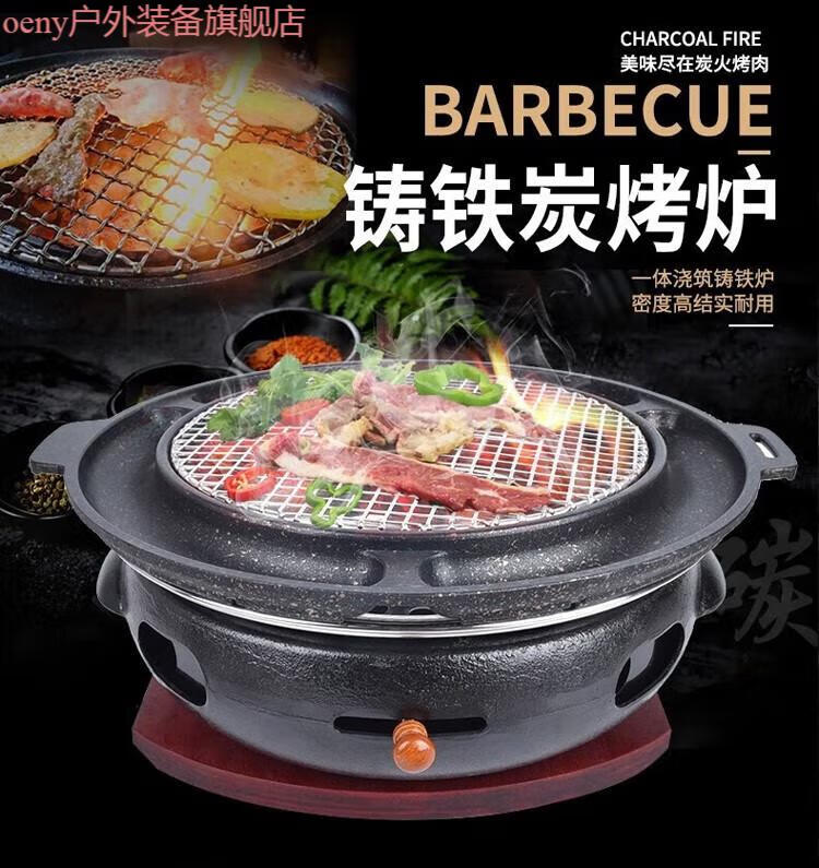 oeny韩式铸铁炭炉无烟烧烤炉商用圆形碳烤肉架家用木炭火炉室内煎肉锅 炭烤夹