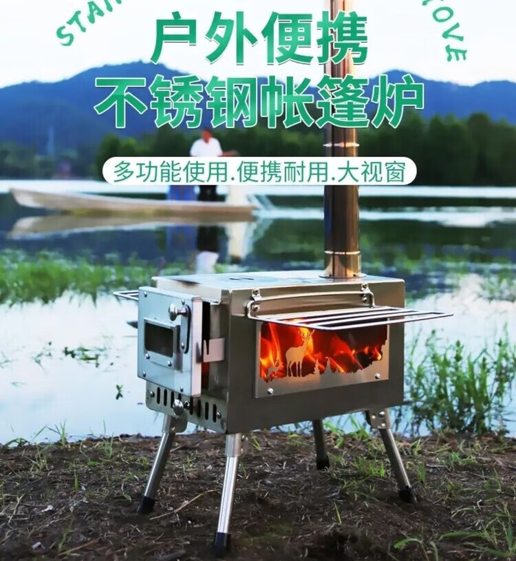 凰一折叠多用取暖帐篷炉 户外不锈钢柴火炉野餐露营轻便柴火灶 大号不锈钢帐篷炉标配