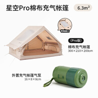山约棉布自动充气帐篷户外露营星空防雨保暖加厚野营过夜全套装备 棉布6.3平 双门+烟囱口+电动泵