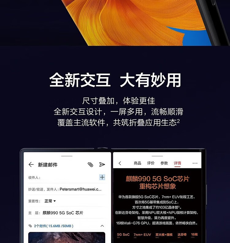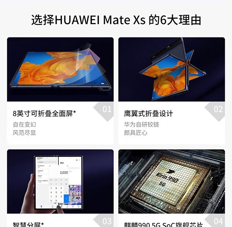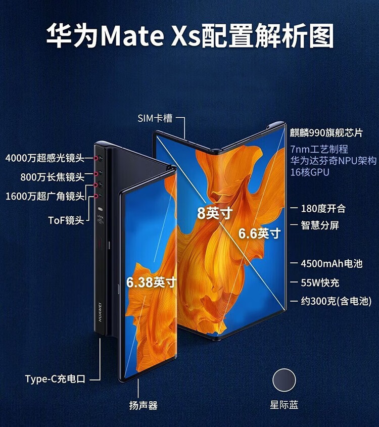 华为 新品上市 Mate Xs 5G折叠屏手机 XT 麒麟990 旗舰芯片 8英寸可折叠全面屏 X2 华为折叠手机 星际蓝【Xs】 8GB+512GB