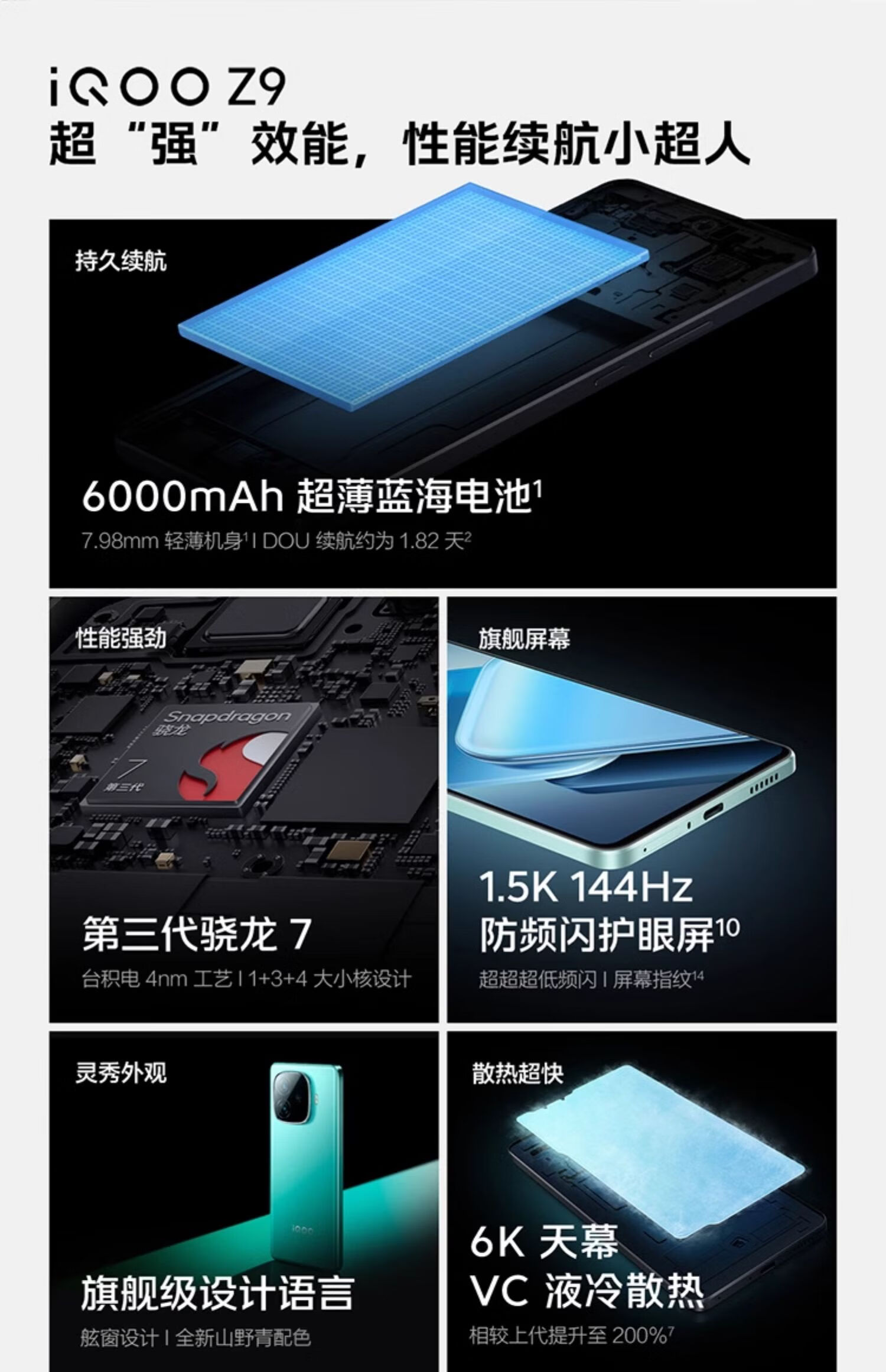 vivoiQOO Z9Turbo+ 天玑9300+ 16G+512G选Z9 6000mah 曜夜黑 8GB+128GB