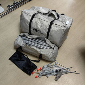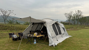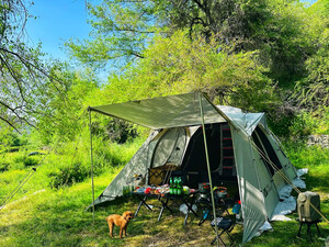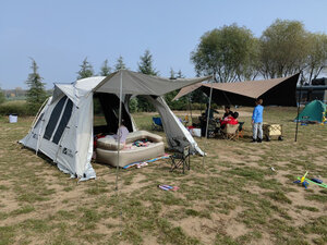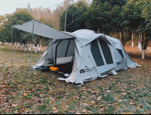营地颜值担当,两家人无压力!抗风防雨,通风性好,户外两室一厅!配上黑胶顶棚,不惧太阳晒!闭眼入。第一次搭建前看好视频教学,一人搭建40分钟,后期快很多!