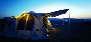 假日星空300,暴雨天完全无压力,帐篷内干爽,通风够强冷凝水少。两室一厅太实用了,孩子和大人分区休息,私密性和活动空间兼得。遮光效果无敌,夏天早上不会被晒醒。