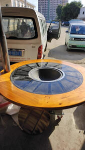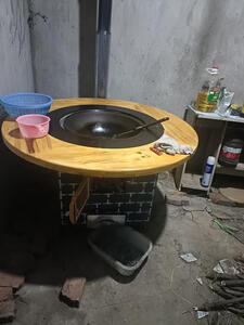 昹砺斯 移动铁锅炖灶台桌柴火灶家用烧木柴地锅鸡大锅台柴火鸡灶农村户外 1.6米圆桌+配玻璃转盘