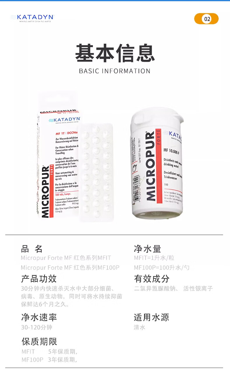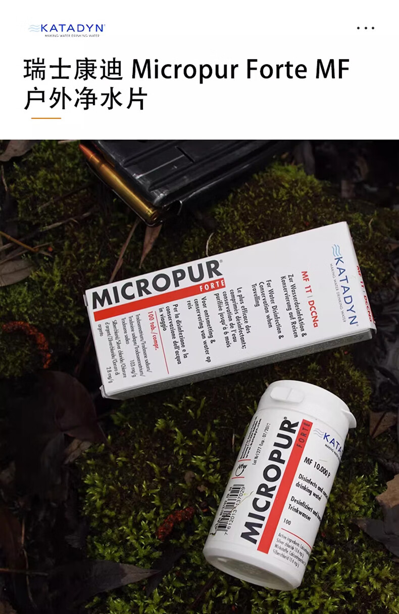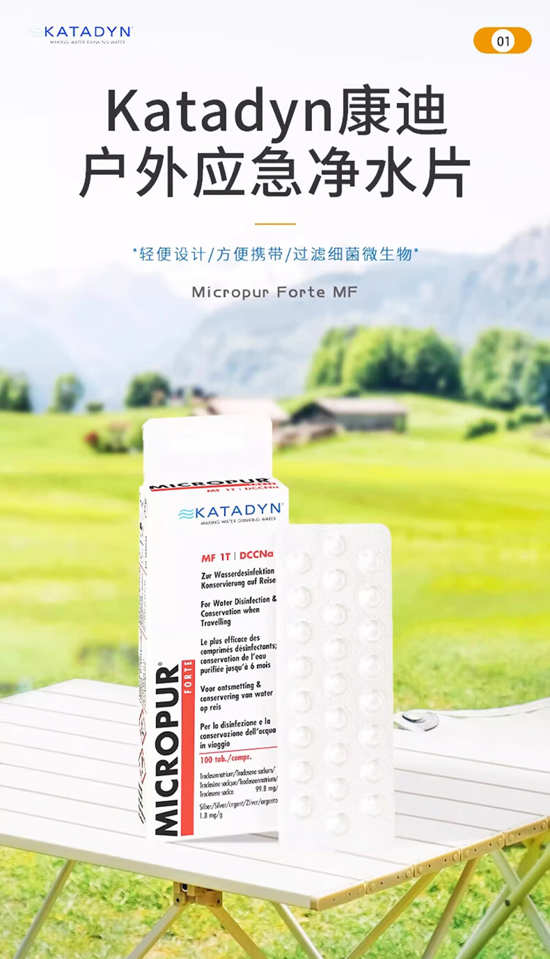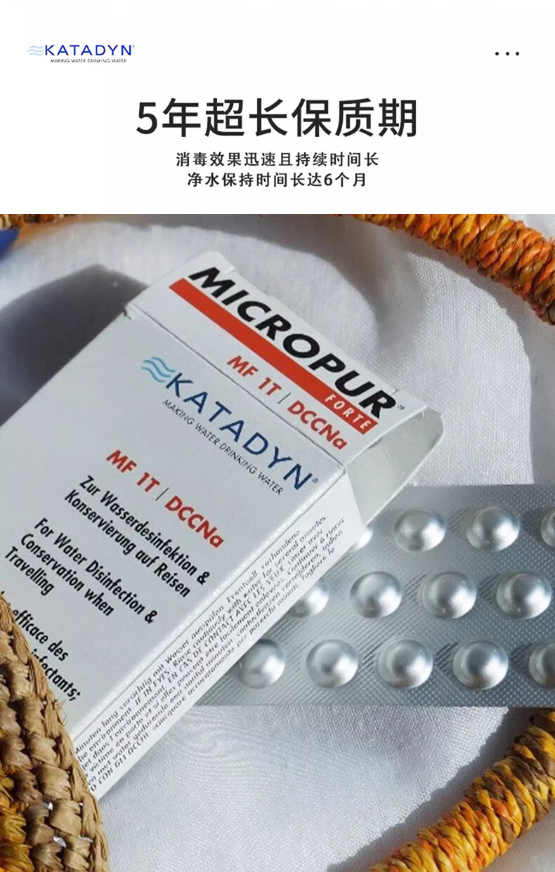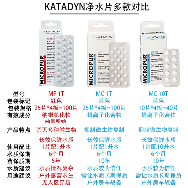 KATADYN瑞士康迪含氯户外净水片野外水质净化应急饮水 MC 1T 1板25粒 净水片(拆零无盒)