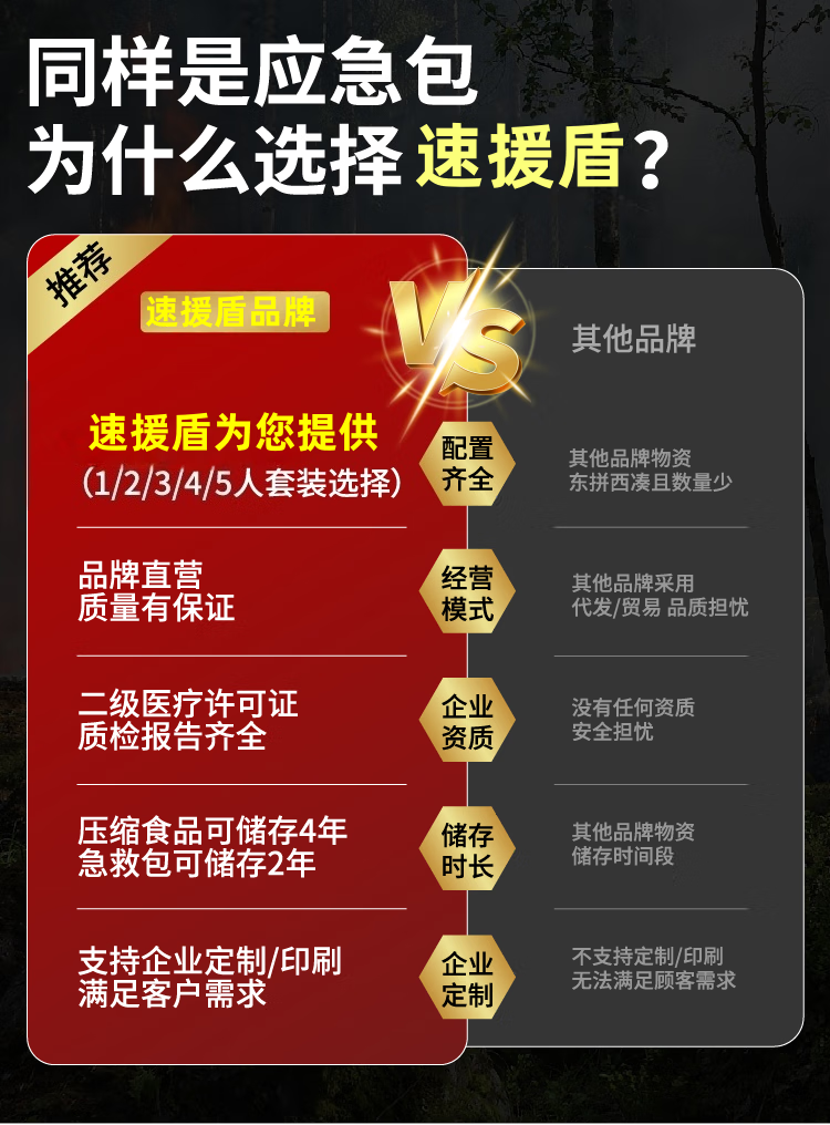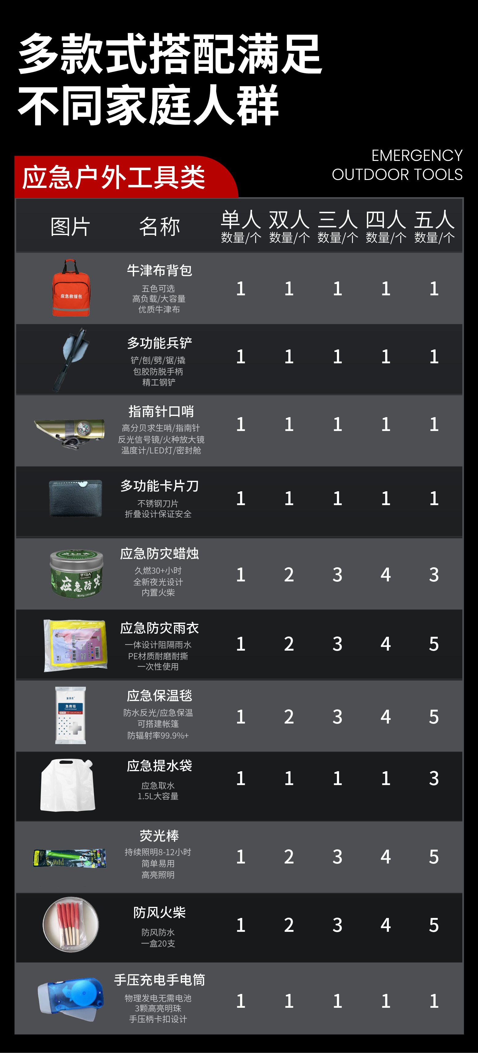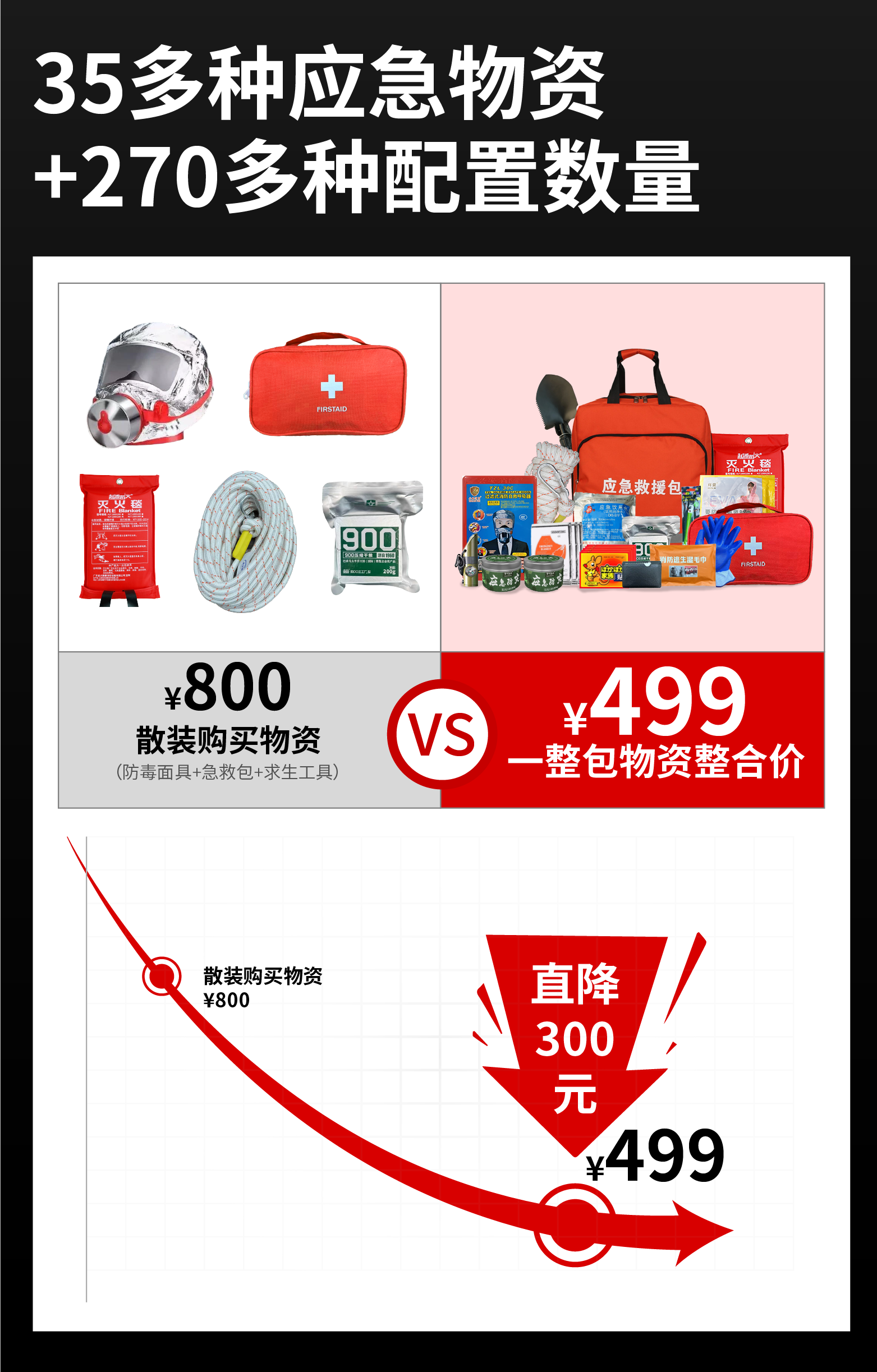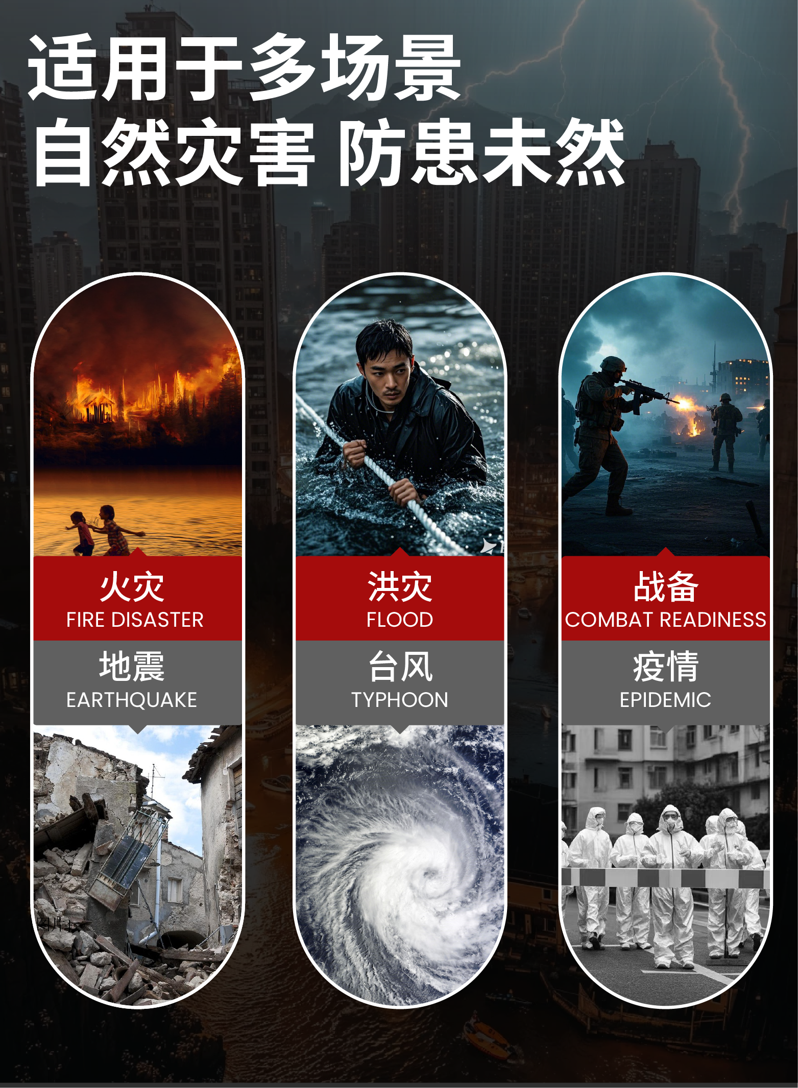 小的地震频发 买来备一份 心里面会踏实一些 挑选了几家 最后选择的这家 套装真心的不错 除了应对地震之外 火灾 洪水 台风 一些自然灾害都能应对