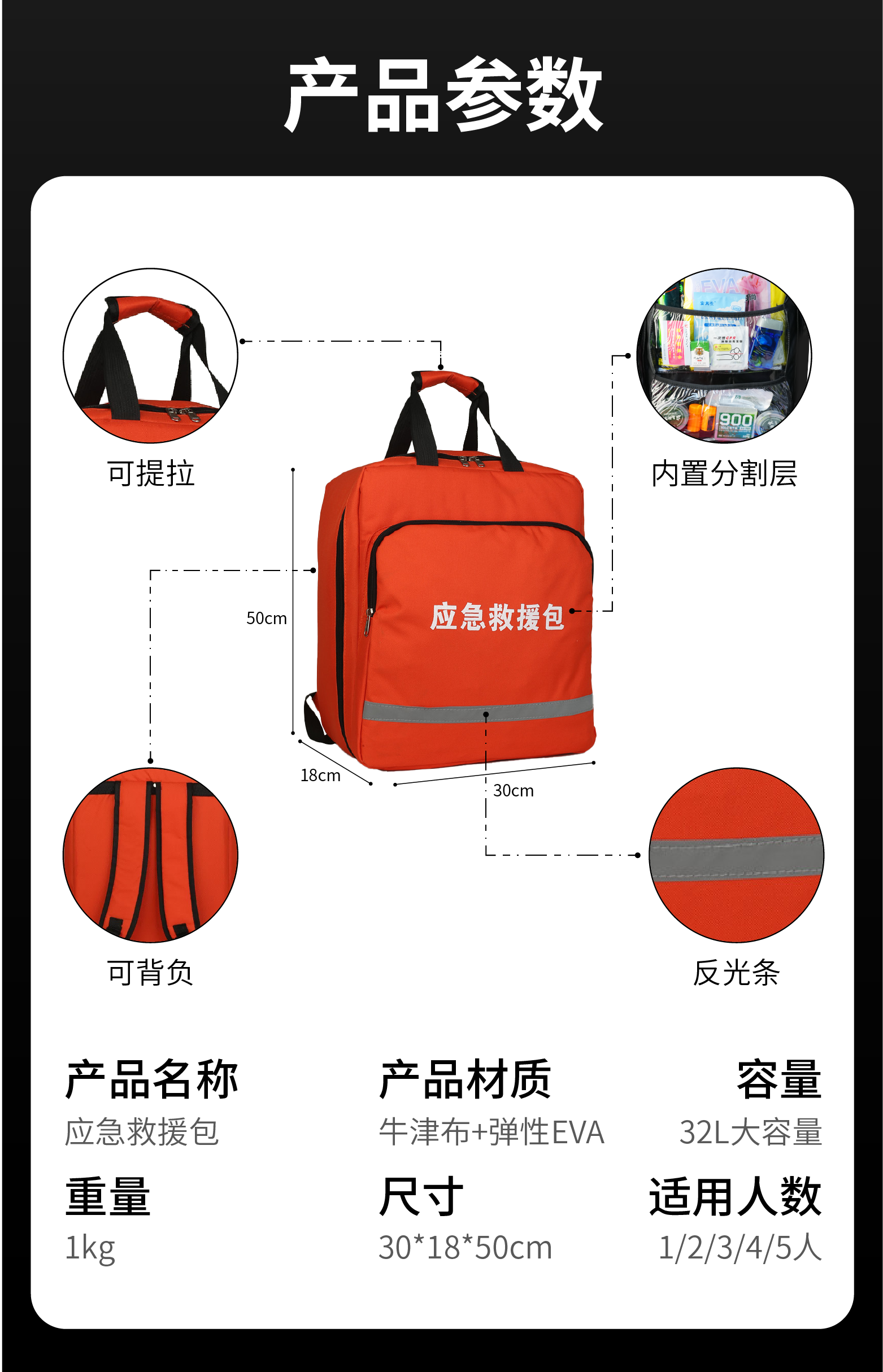 速援盾家庭应急物资储备包地震防灾急救包72小时生存装备 消防逃生救援 228件橘色包 四人家庭推荐