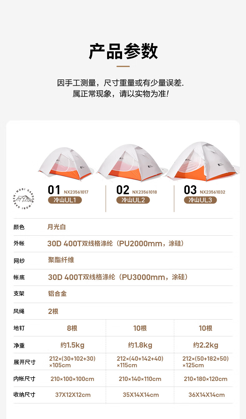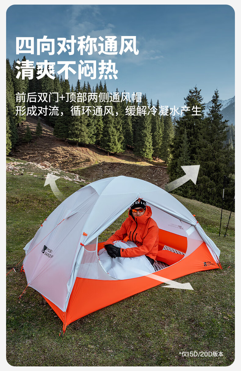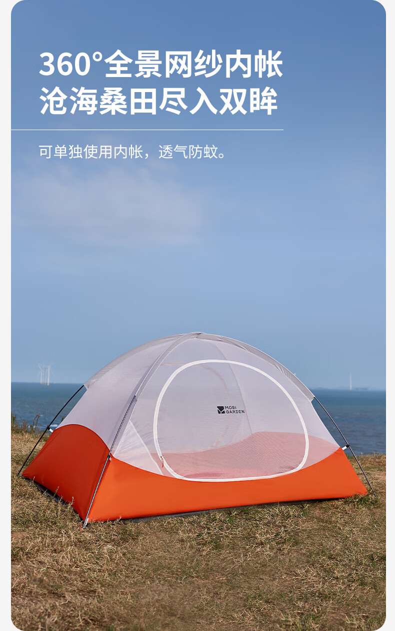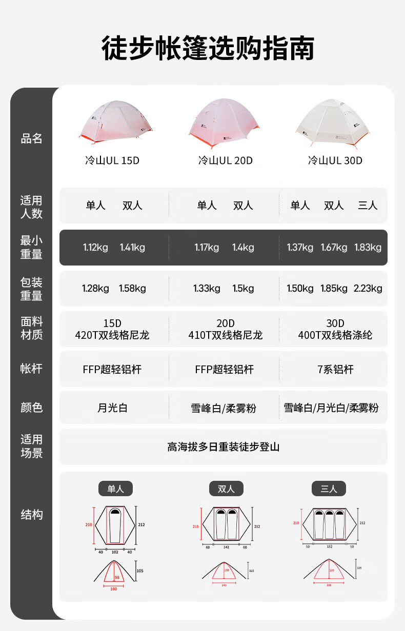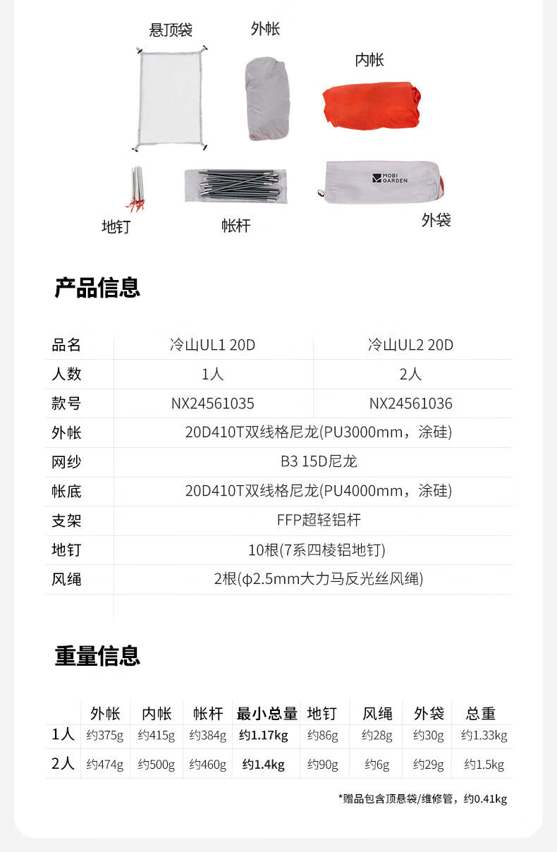 牧高笛冷山UL 户外徒步露营防风防雨超轻便携易搭建双层帐篷 双人地席/颜色随机