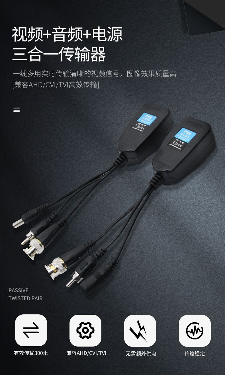 HIKVISION原装监控PV电源视频二合一双绞线传输器同轴模拟 BNC接头转RJ45网线口安防监控 5MP三合一双绞线传输器(一