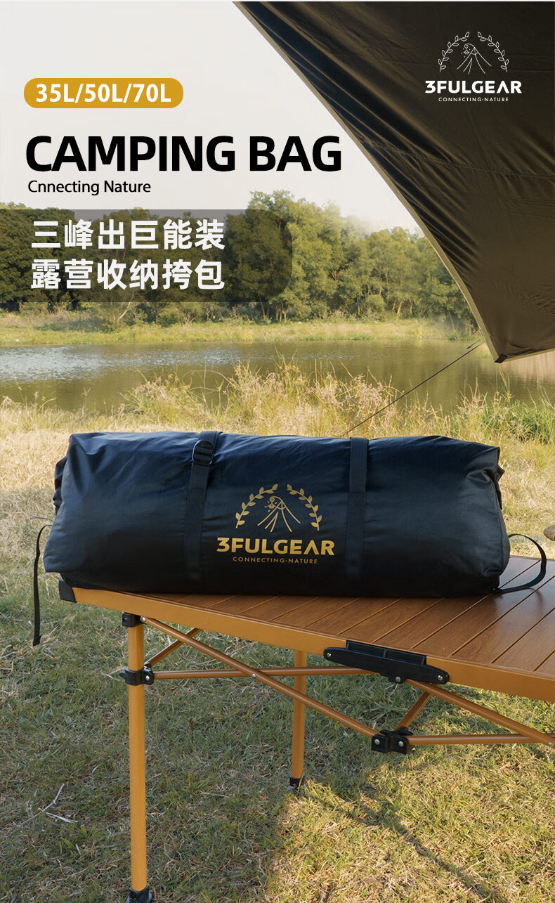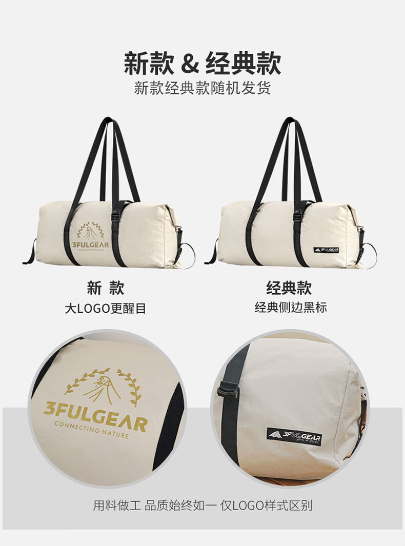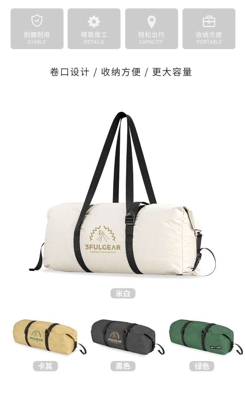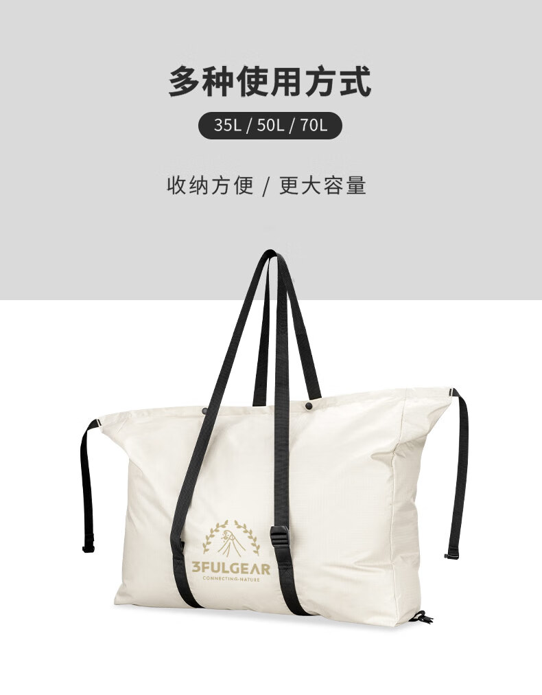 三峰出三峰巨能装挎包驼包坚固耐磨牛津布手提包旅行包户外休闲露营野餐 巨能装L号 米白色【约73升】