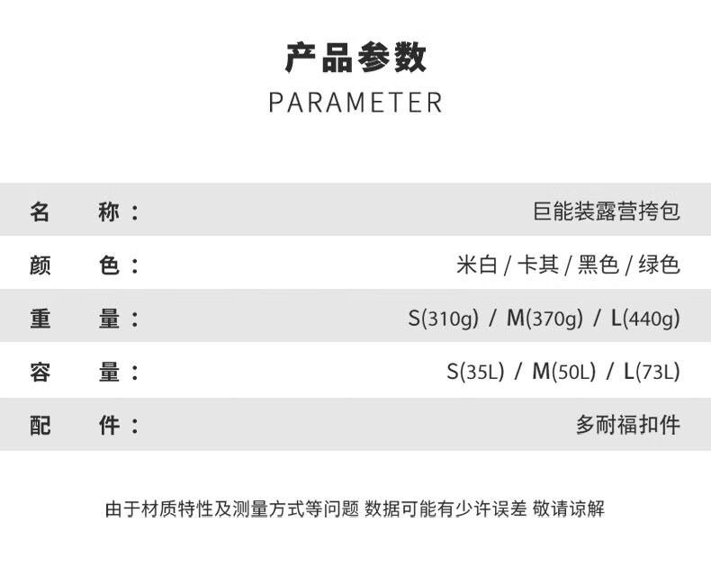 体积小,重量轻,是用来中专徒步的时候装睡袋帐篷等物资的,可以用马帮拖,这样的话就非常省力比较轻,但是还防水性能还没有经过检验,能装的东西也比较多