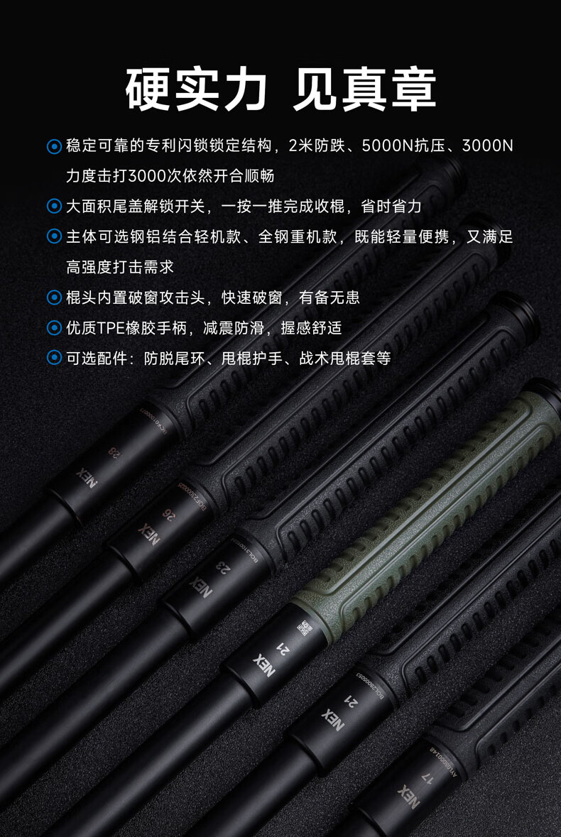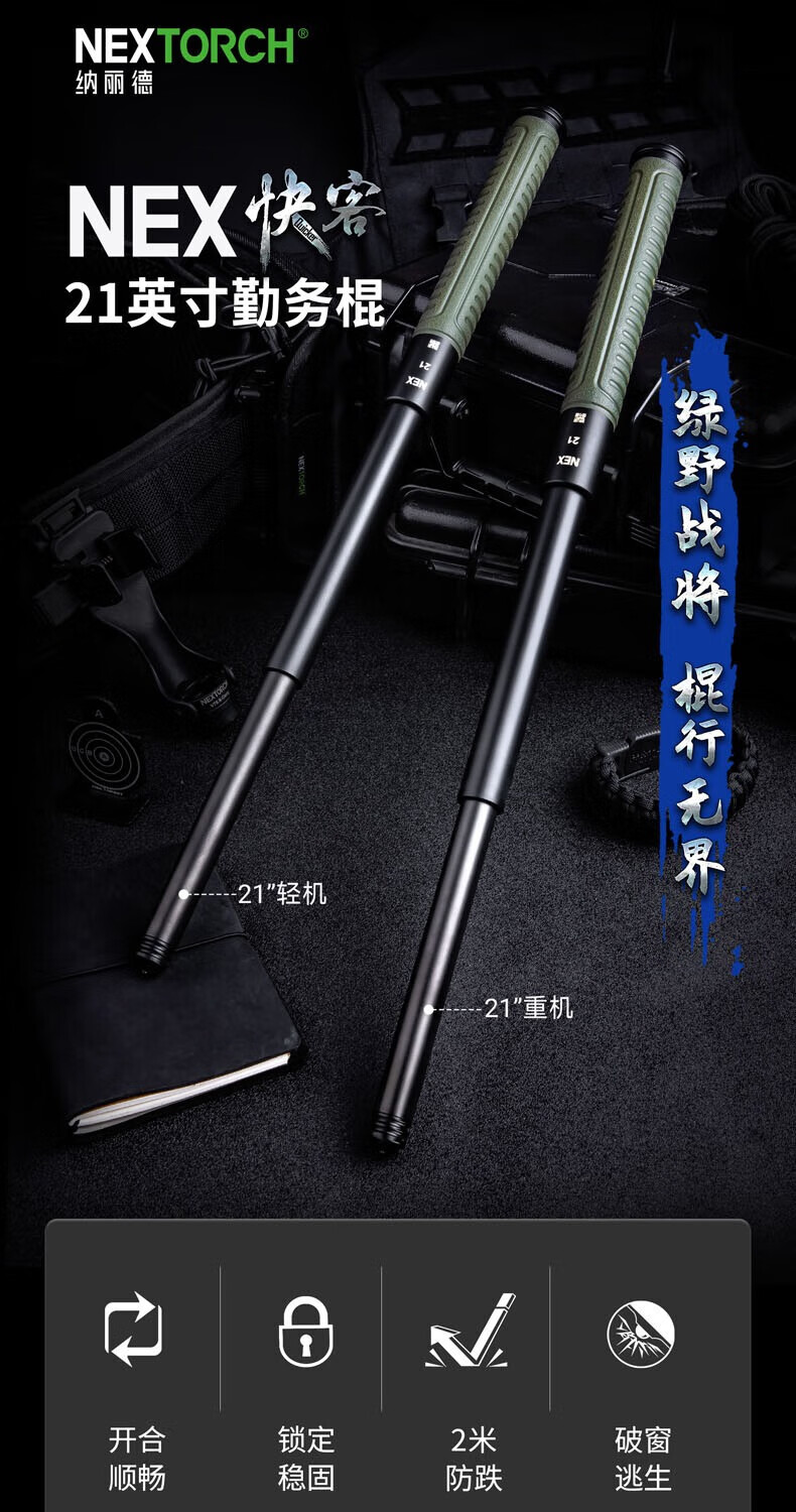 纳丽德(NEXTORCH)NEX甩棍棒快客勤务棍机械轻重机教官版车载用品合法防狼破窗神器 NEX 23英寸轻机+V75