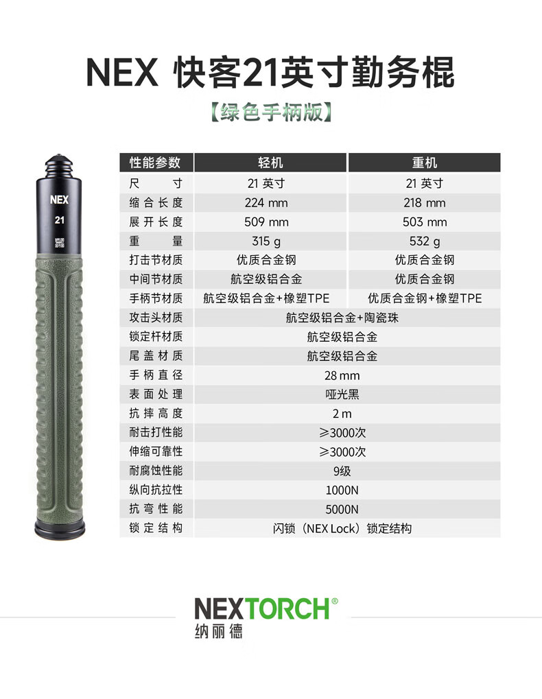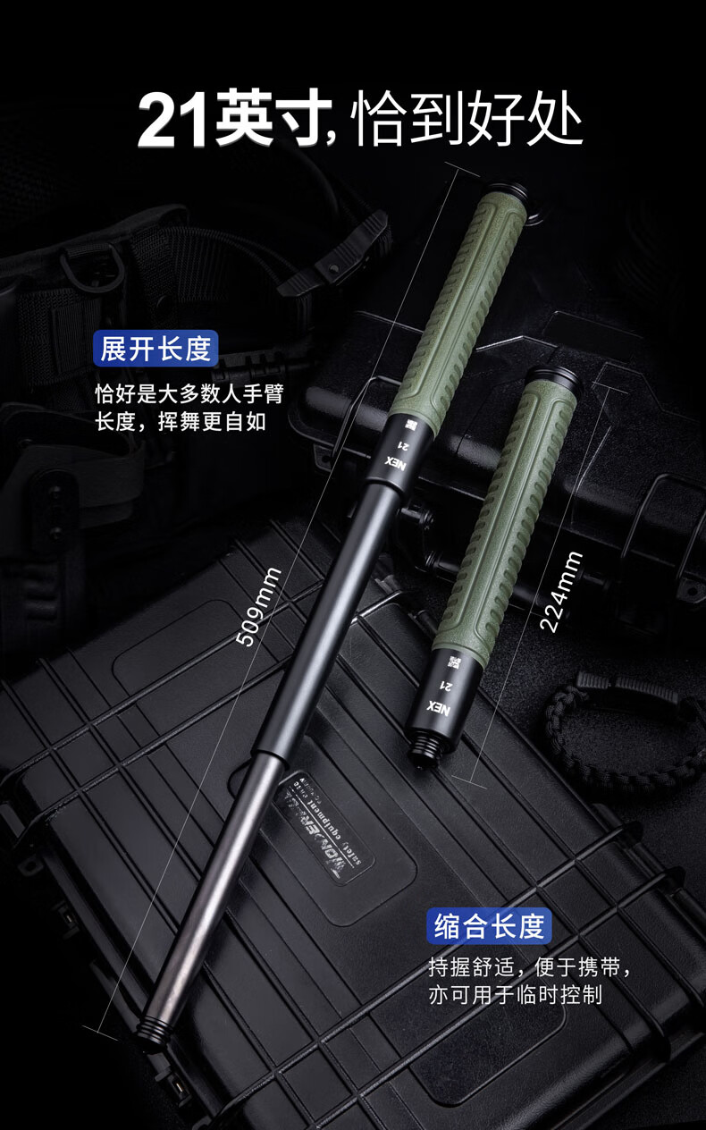 纳丽德NEX 21英寸暗影橄榄甩棍快客勤务棍机械轻机重机车载用品合法防狼 21英寸轻机(暗影橄榄色手柄)