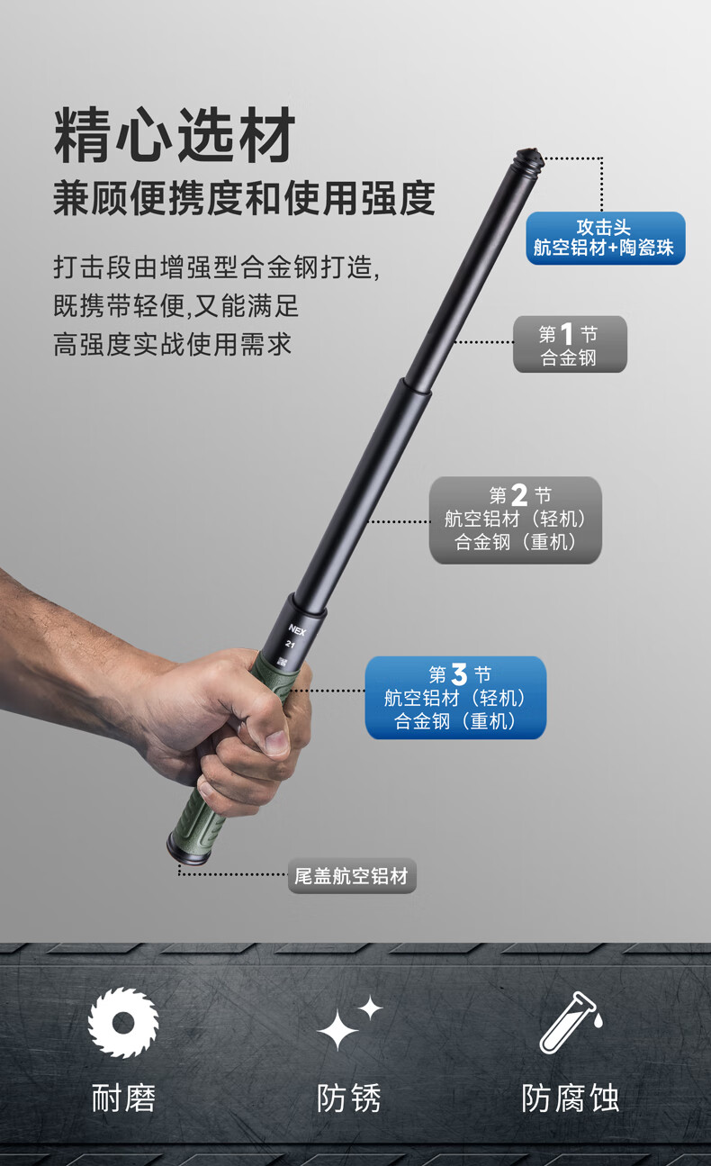 纳丽德(NEXTORCH) NEX39英寸快客勤务棍甩棒伸缩机械便携车载合法防卫棍破窗神器 39英寸四节棍