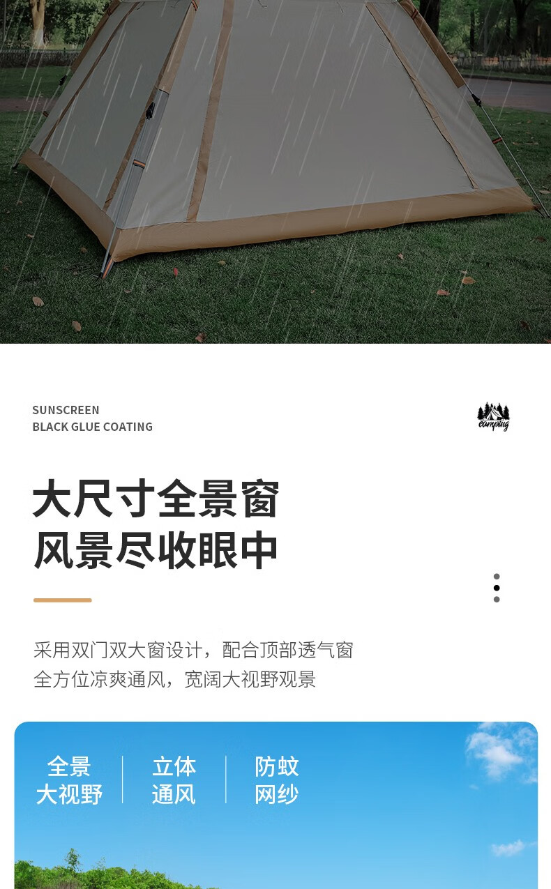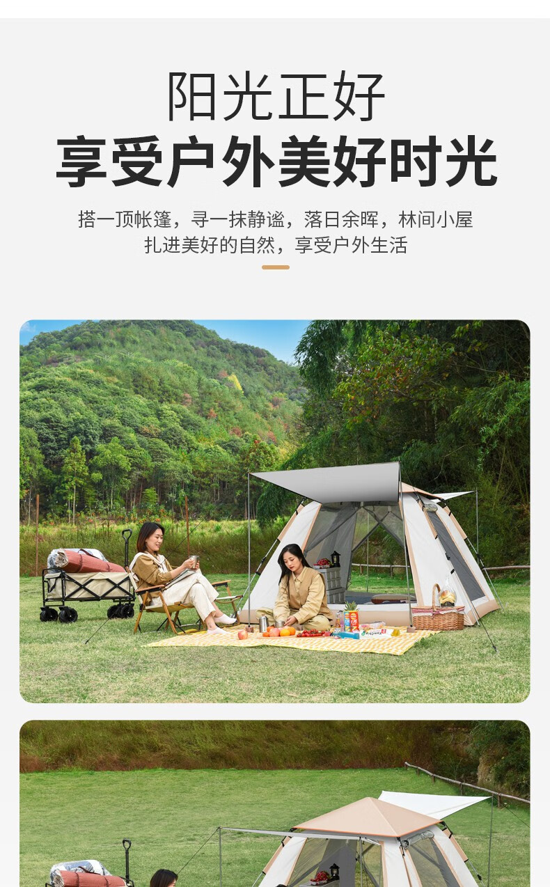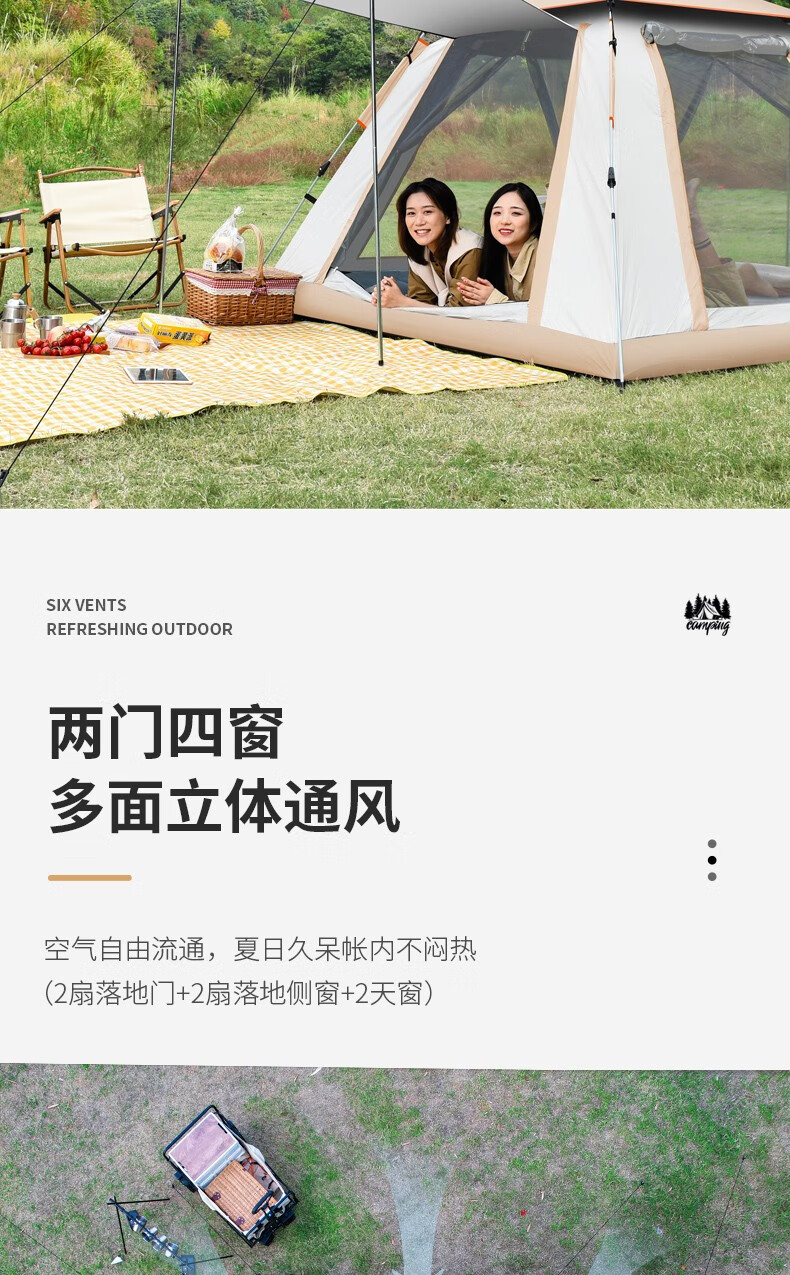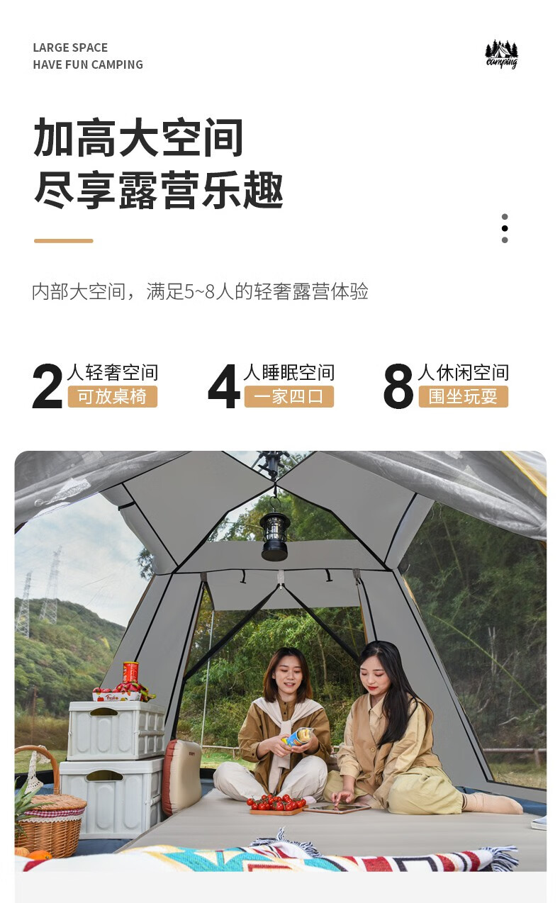 探险者探险者帐篷户外折叠便携式野营过夜防雨加厚露营装备全套自动秋冬 【防雨加厚款】+桌椅五件套套餐