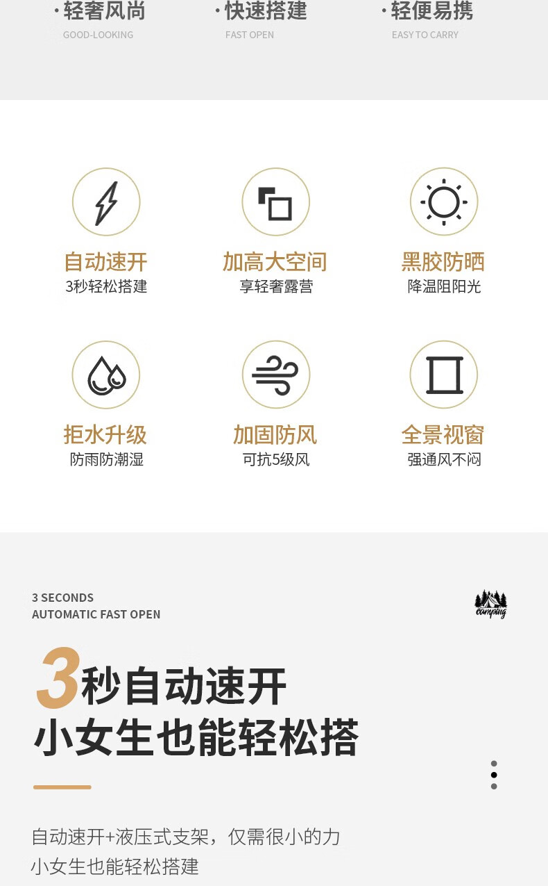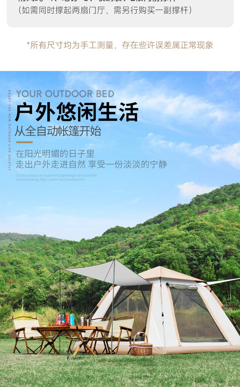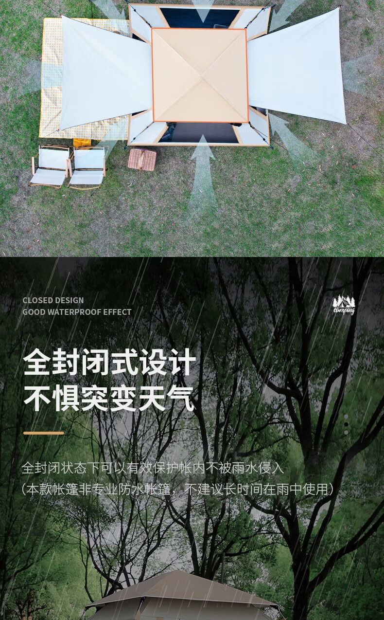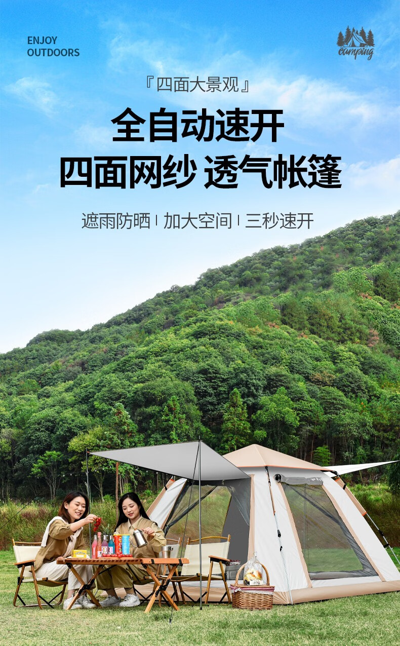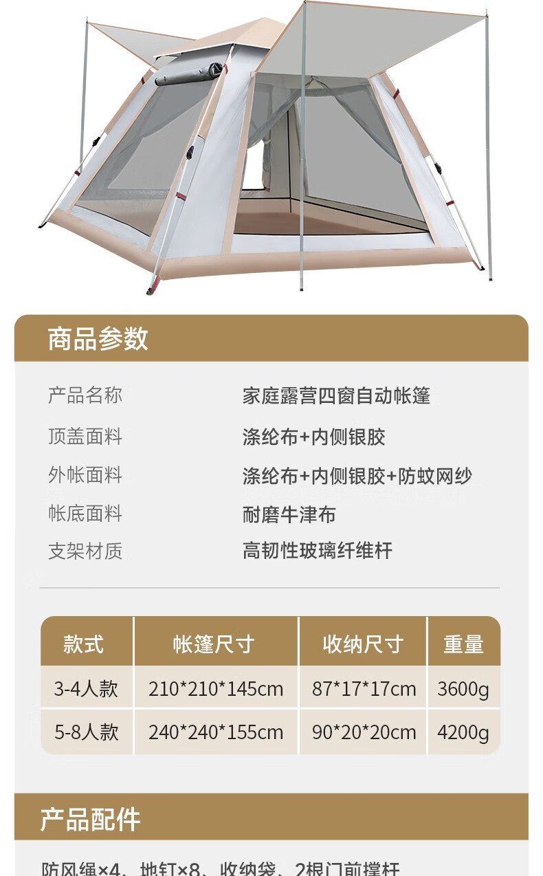 探险者探险者帐篷户外折叠便携式野营过夜防雨加厚露营装备全套自动秋冬 【防雨加厚款】+桌椅五件套套餐