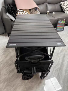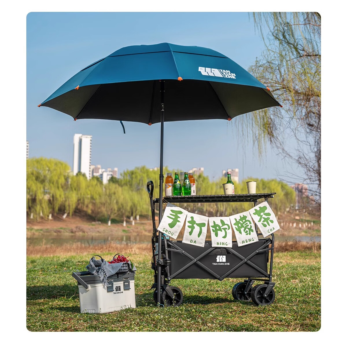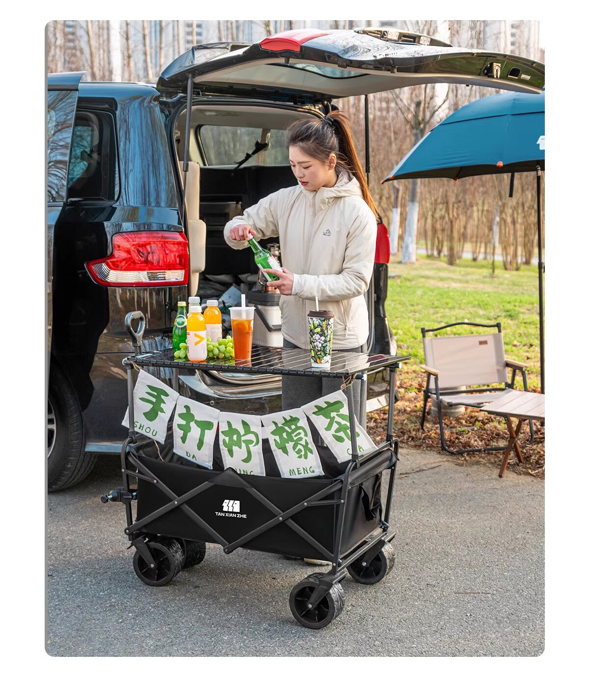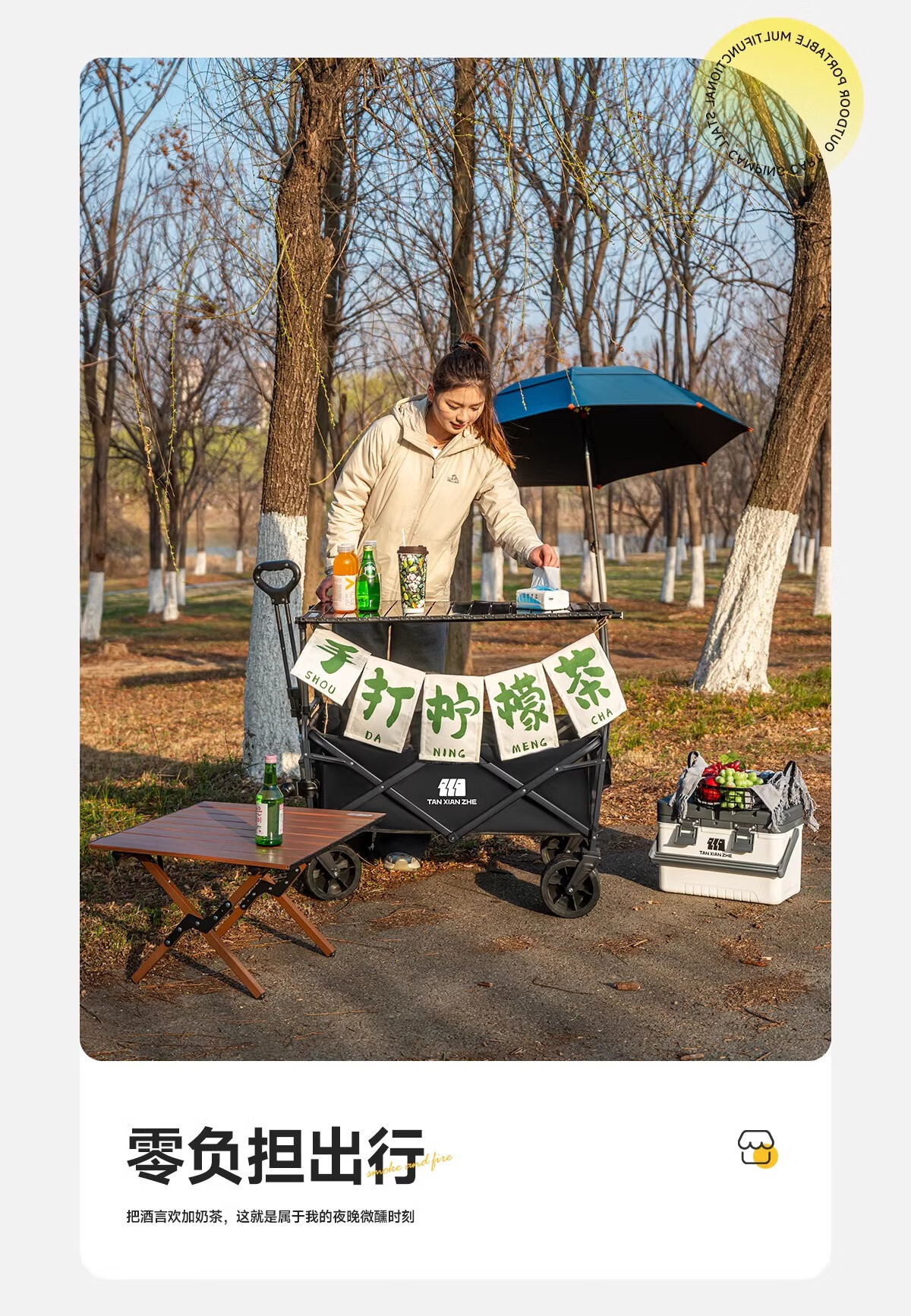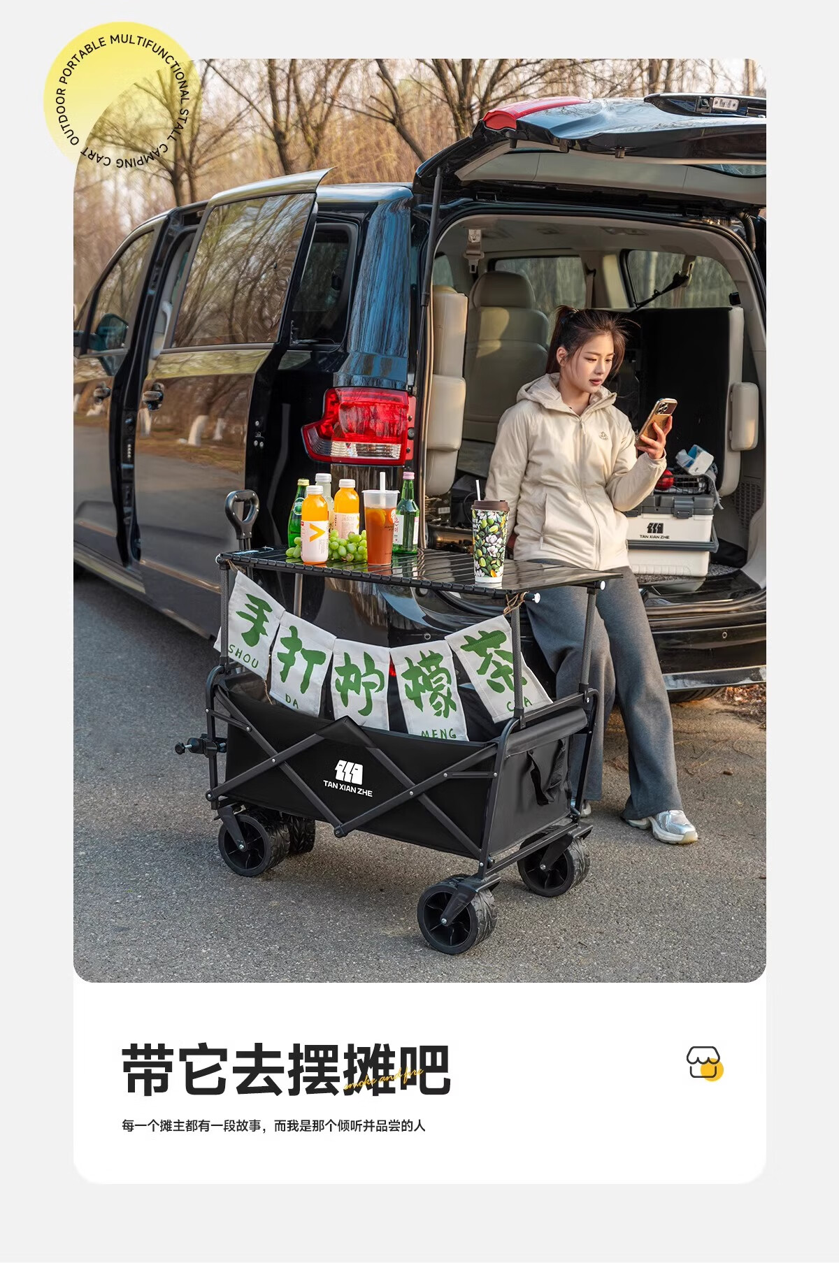 野徒者露营车户外推车野餐车儿童可躺露营装备折叠摆摊营地车小买菜车 90卡其色桌板 升级后开门款