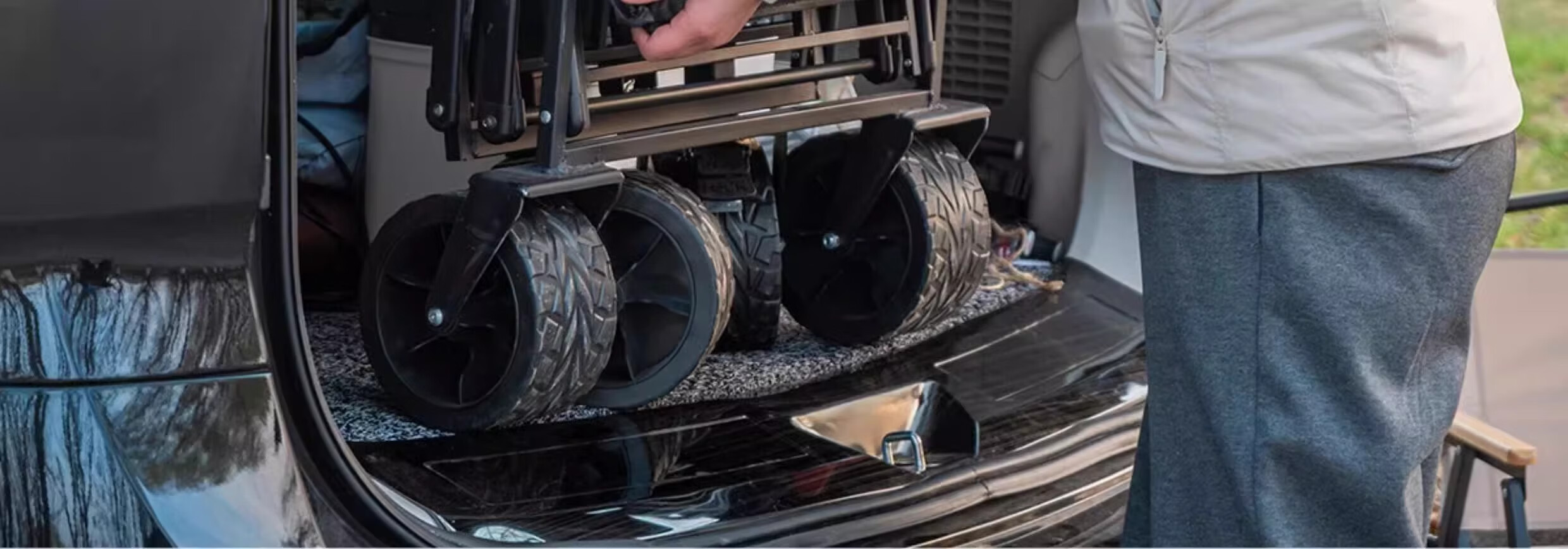 买的越野轮,出摊超级好拉。也很能装,品牌质量就是好,收纳也方便。