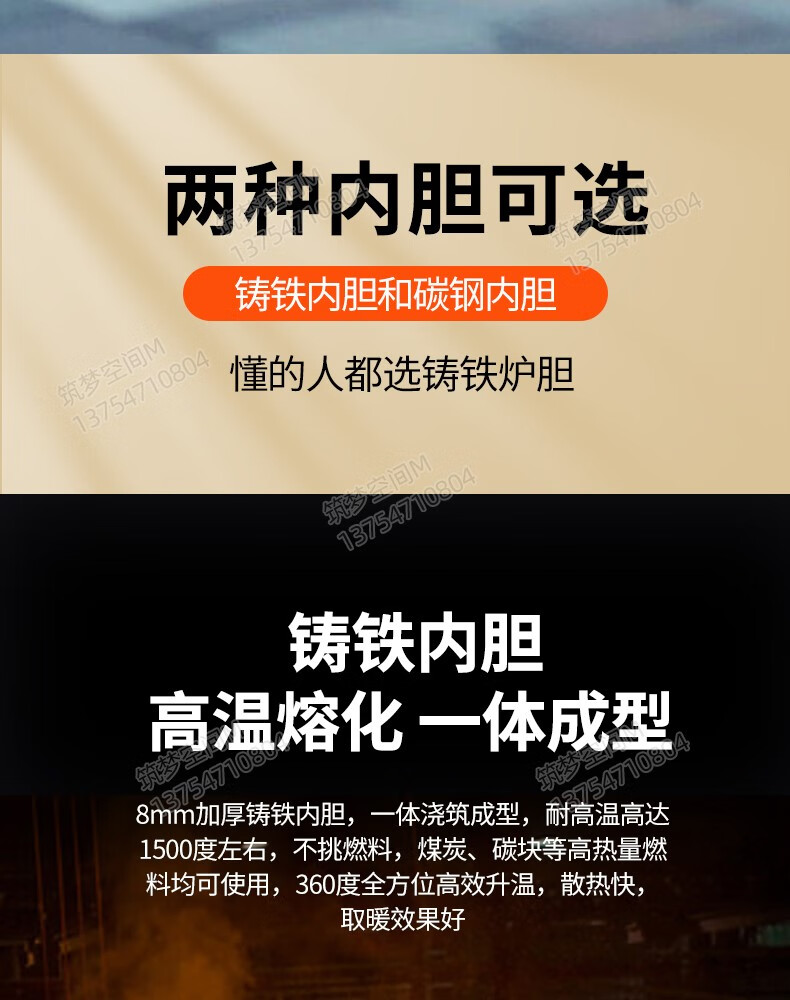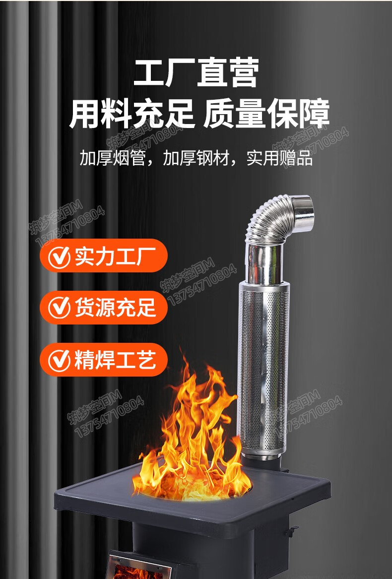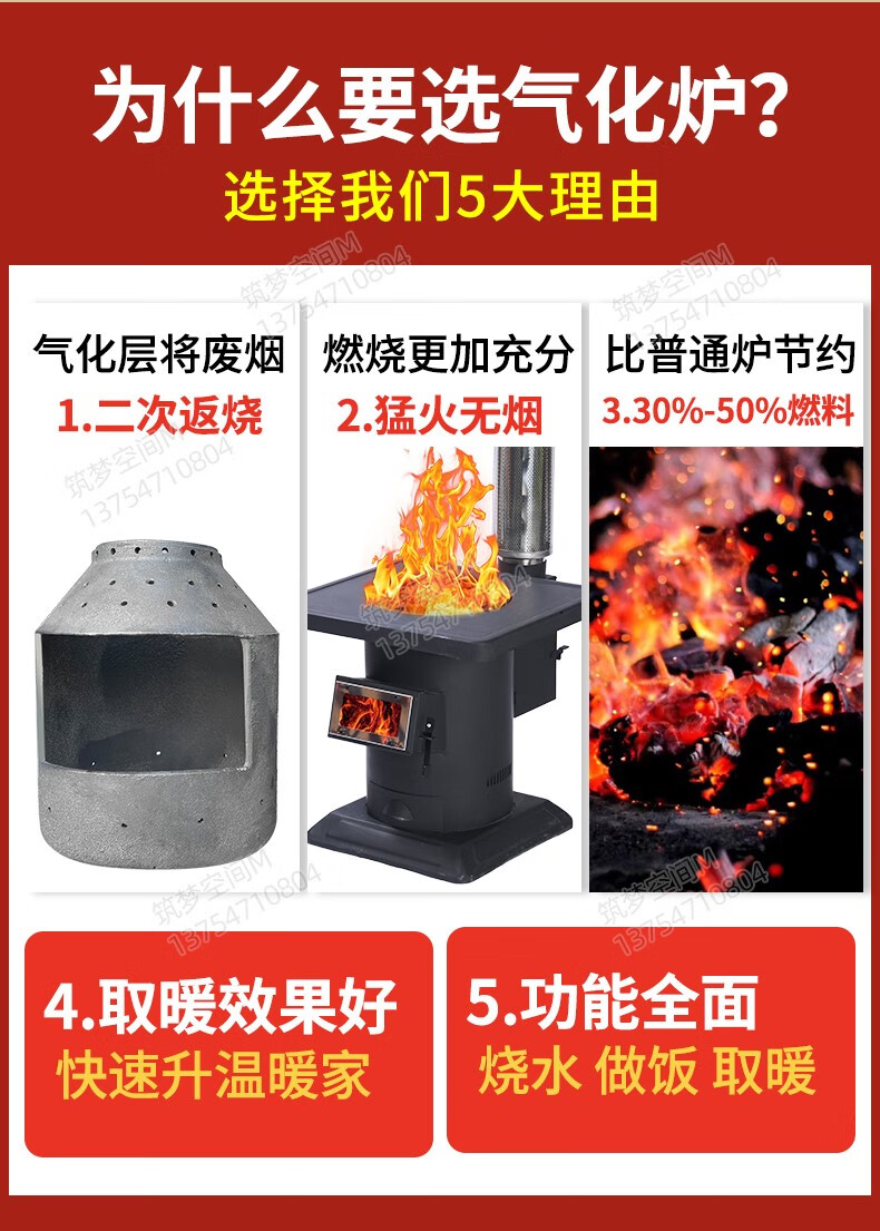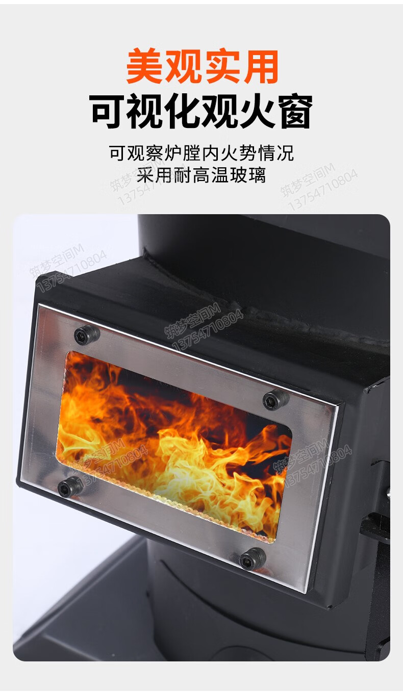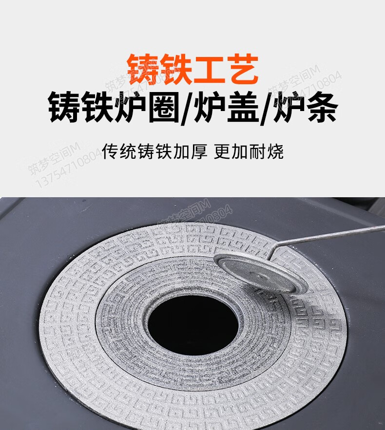 新款冬季农村家用室内柴煤两用无烟气化炉铸铁燃煤内胆柴火取暖炉 烧不烂高端铸铁烤箱气化炉+烧火