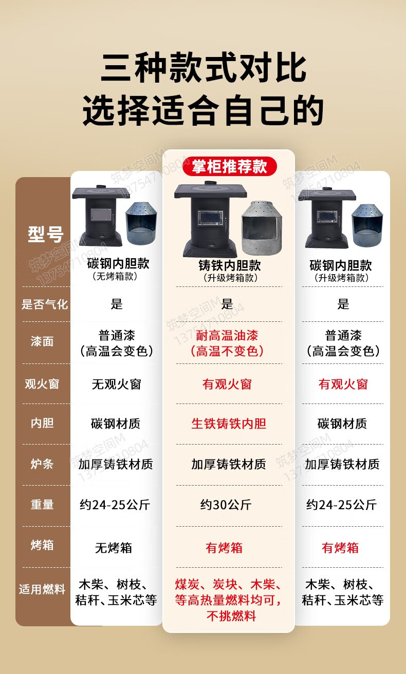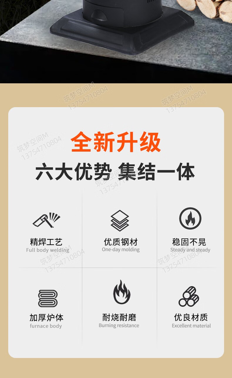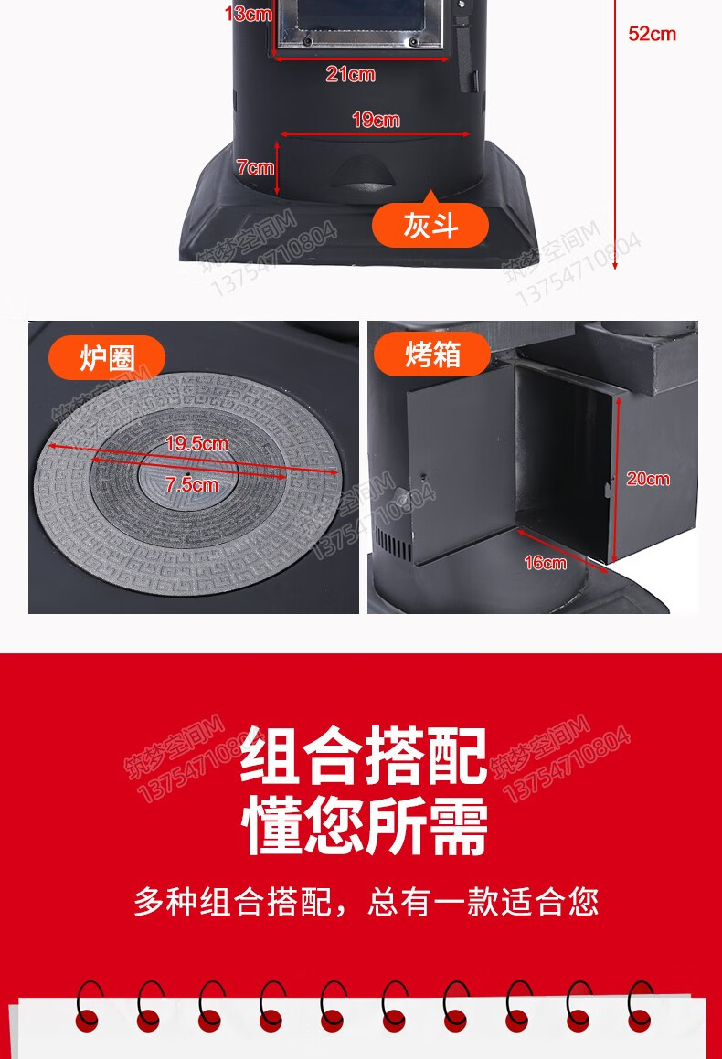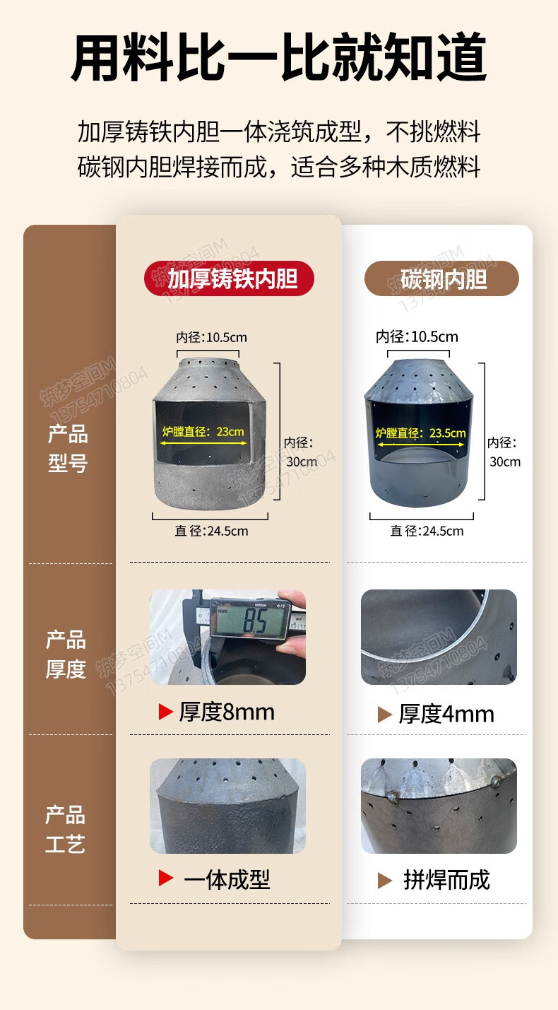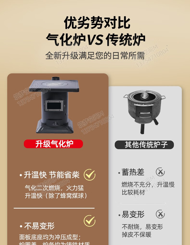 新款冬季农村家用室内柴煤两用无烟气化炉铸铁燃煤内胆柴火取暖炉 烧不烂高端铸铁烤箱气化炉+烧火