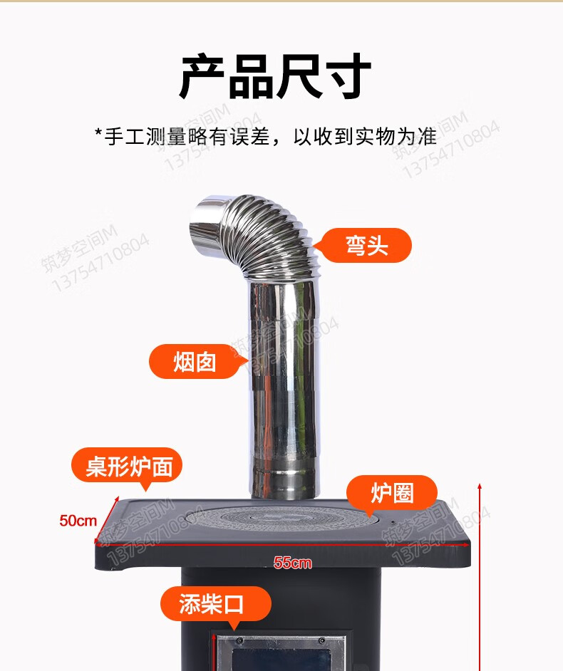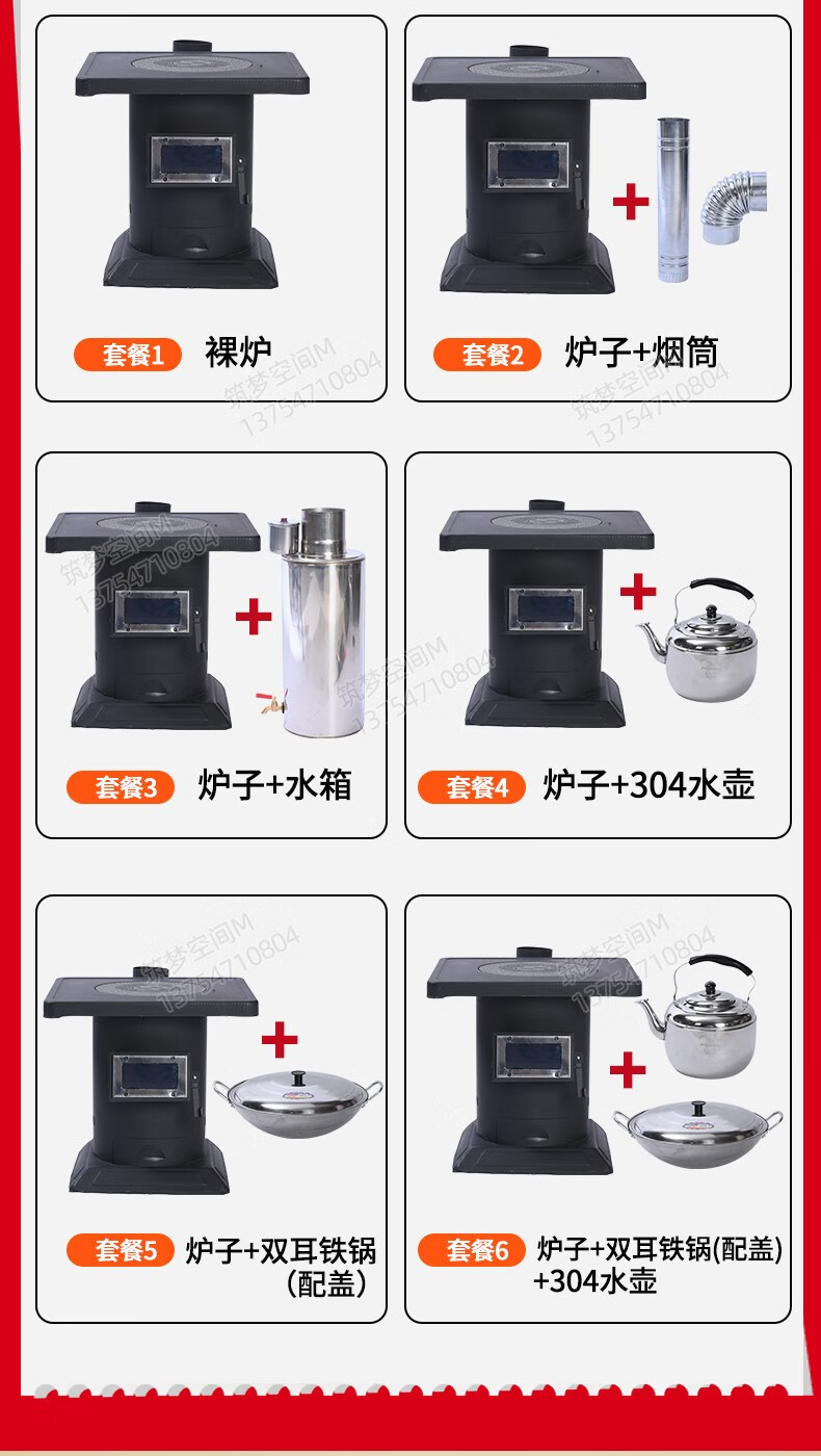 靠森(Kaooseen)取暖炉农村家用气化取暖炉烧木柴煤炭两用特厚大铁锅柴火猛火灶台 55cm炉+配件