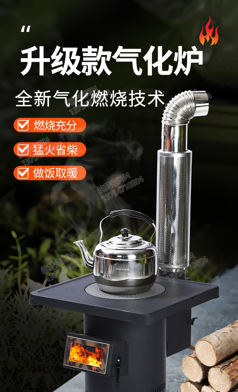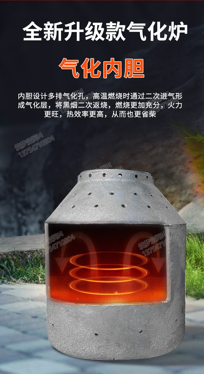 新式农村气化炉柴火做饭取暖家用节能无烟环保室内室外烧煤两用 自吸式无烟气化炉