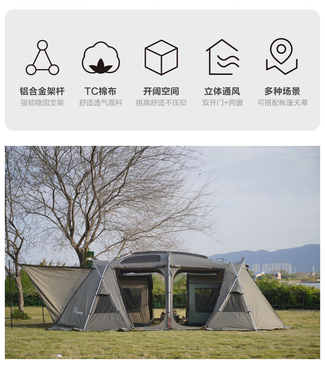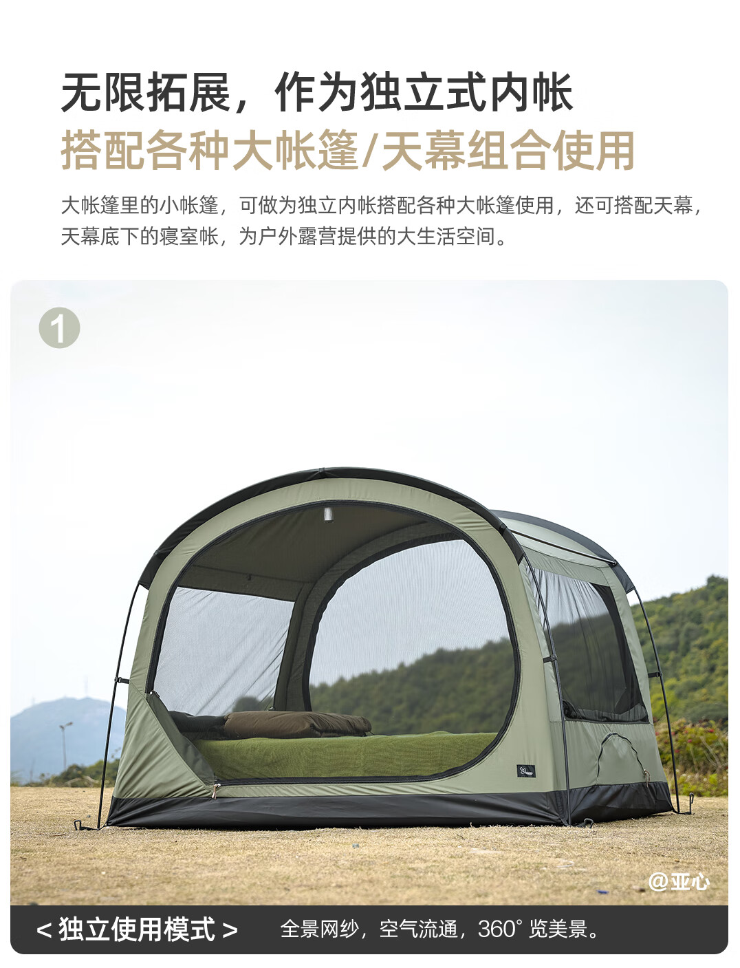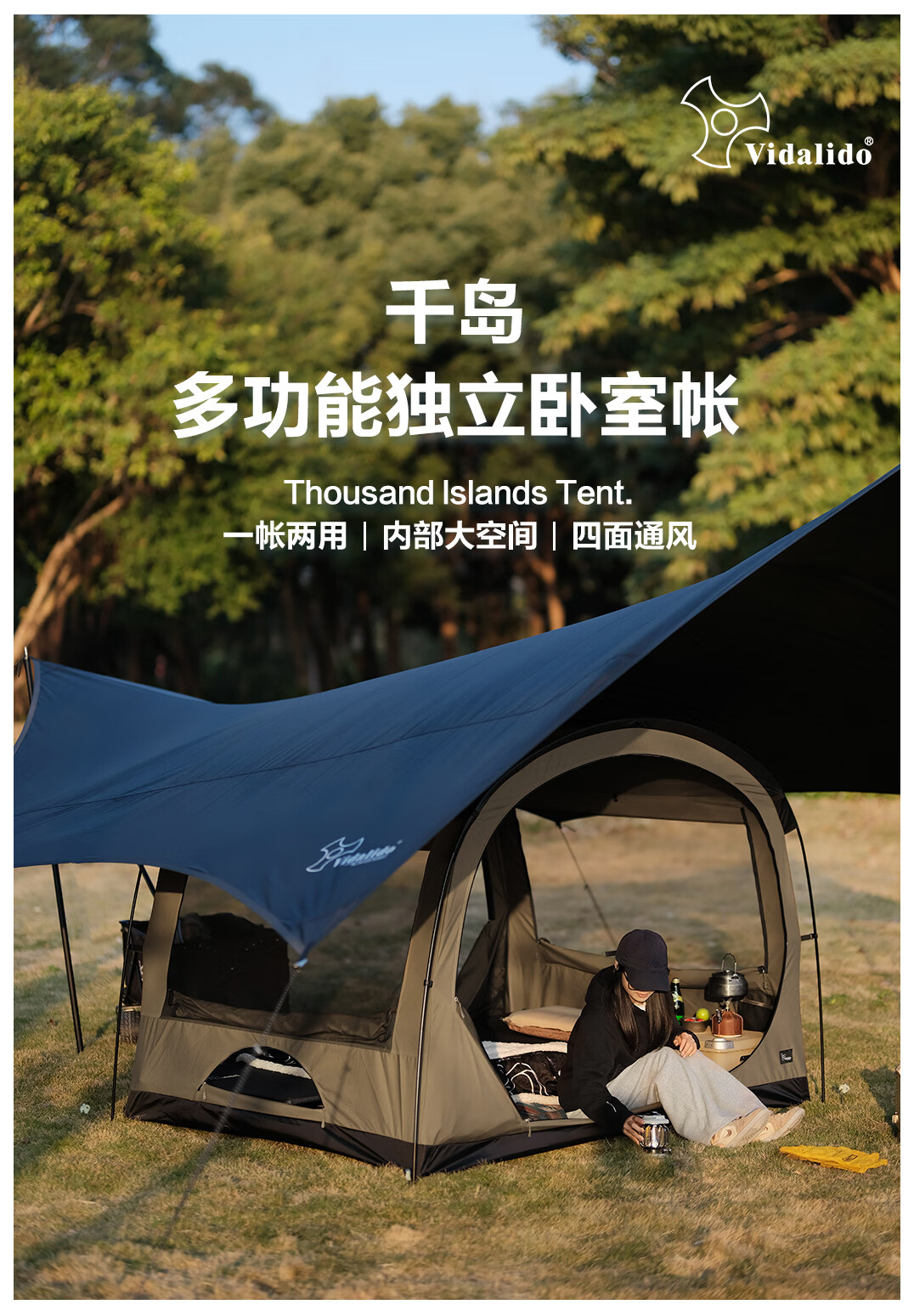 vidalido维达利多户外露营千岛卧室帐两用睡帐防风遮阳TC棉布自立内帐帐篷 千岛plus-黑色三人180g