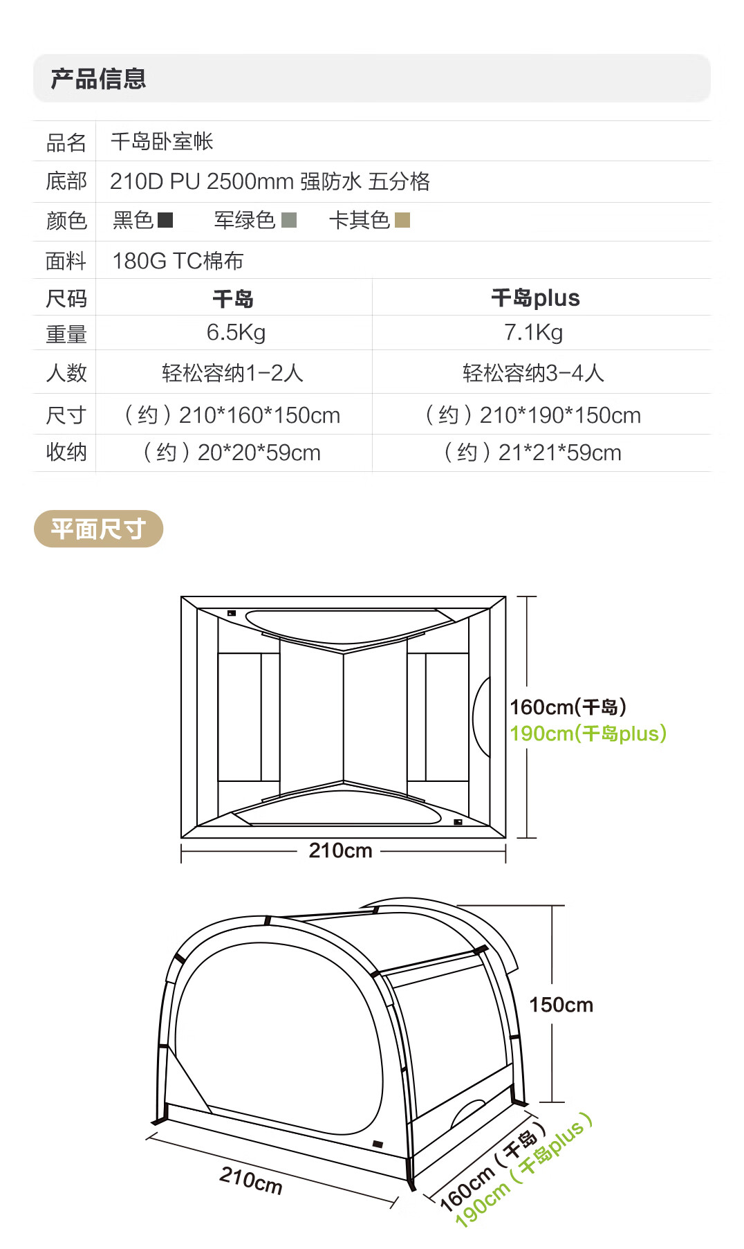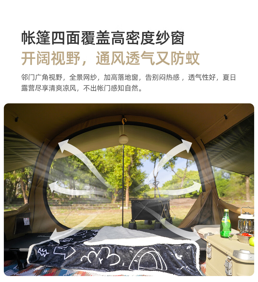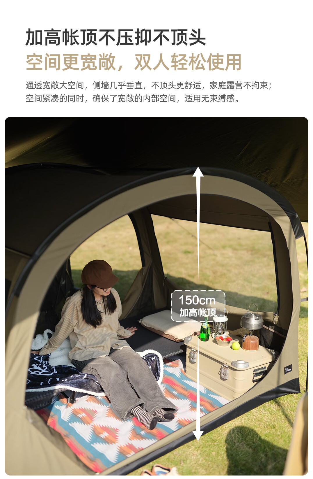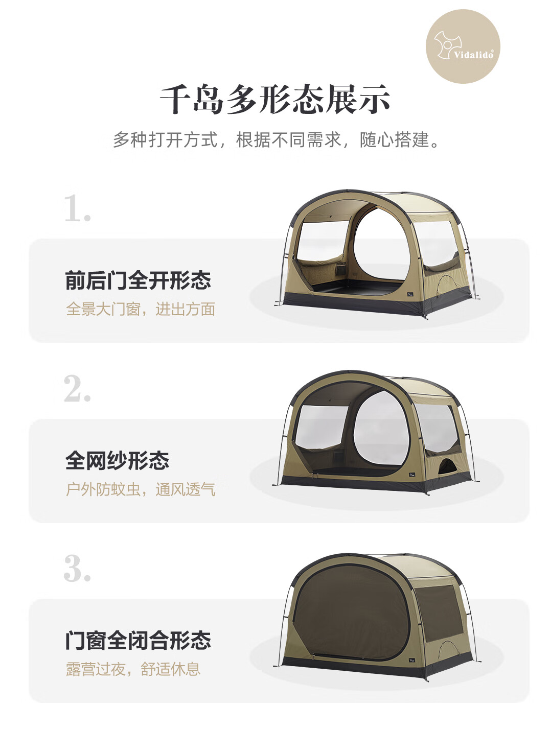 vidalido维达利多户外露营千岛卧室帐两用睡帐防风遮阳TC棉布自立内帐帐篷 千岛plus-黑色三人180g