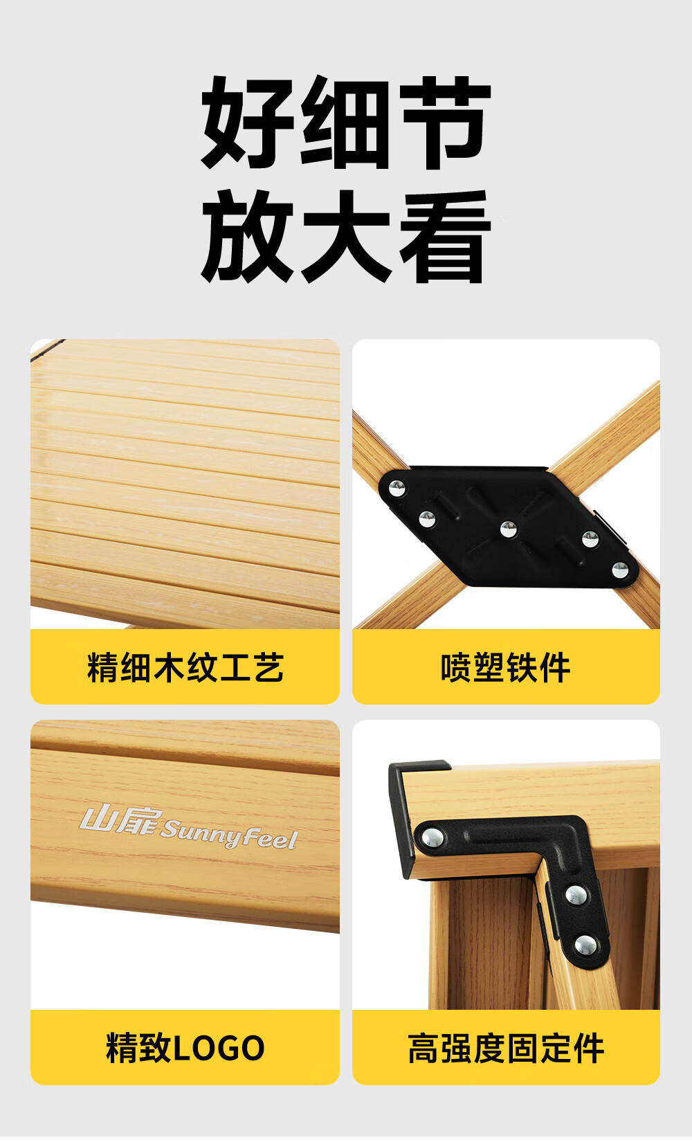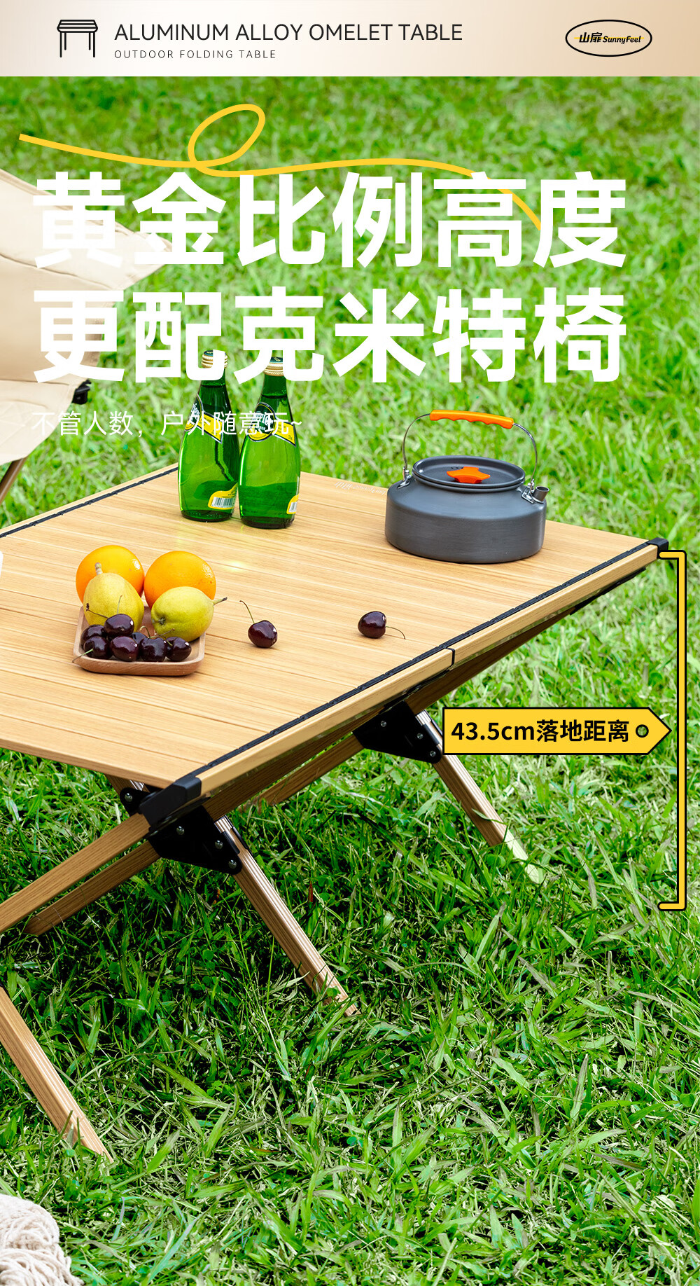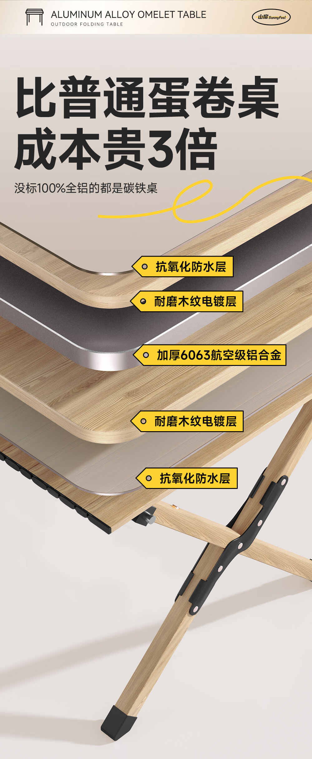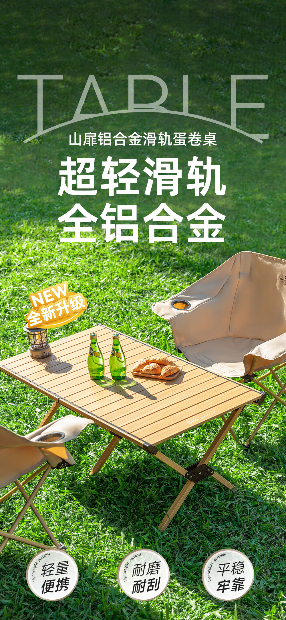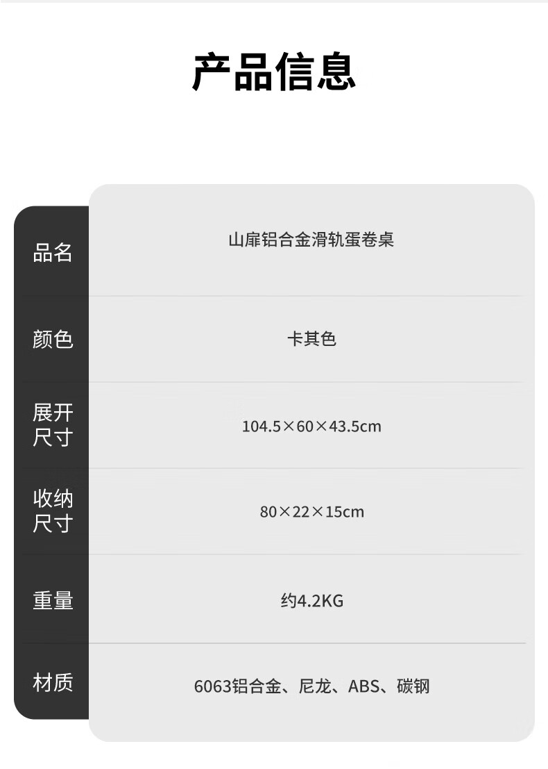 山扉山姆同款蛋卷桌滑轨蛋卷桌铝合金户外露营桌便携野餐野营桌 滑轨蛋卷桌 卡其色