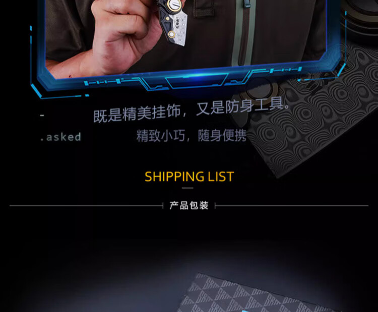 酷撼全碳纤维指虎防身加厚高硬度男女合法武器随身户外防狼单指环神器 A款 指虎挂绳+不锈钢链+伞兵绳