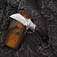刀治郎爪子折叠刀口袋大马士革钢户外多功能高硬度防身便携家用露营刀具