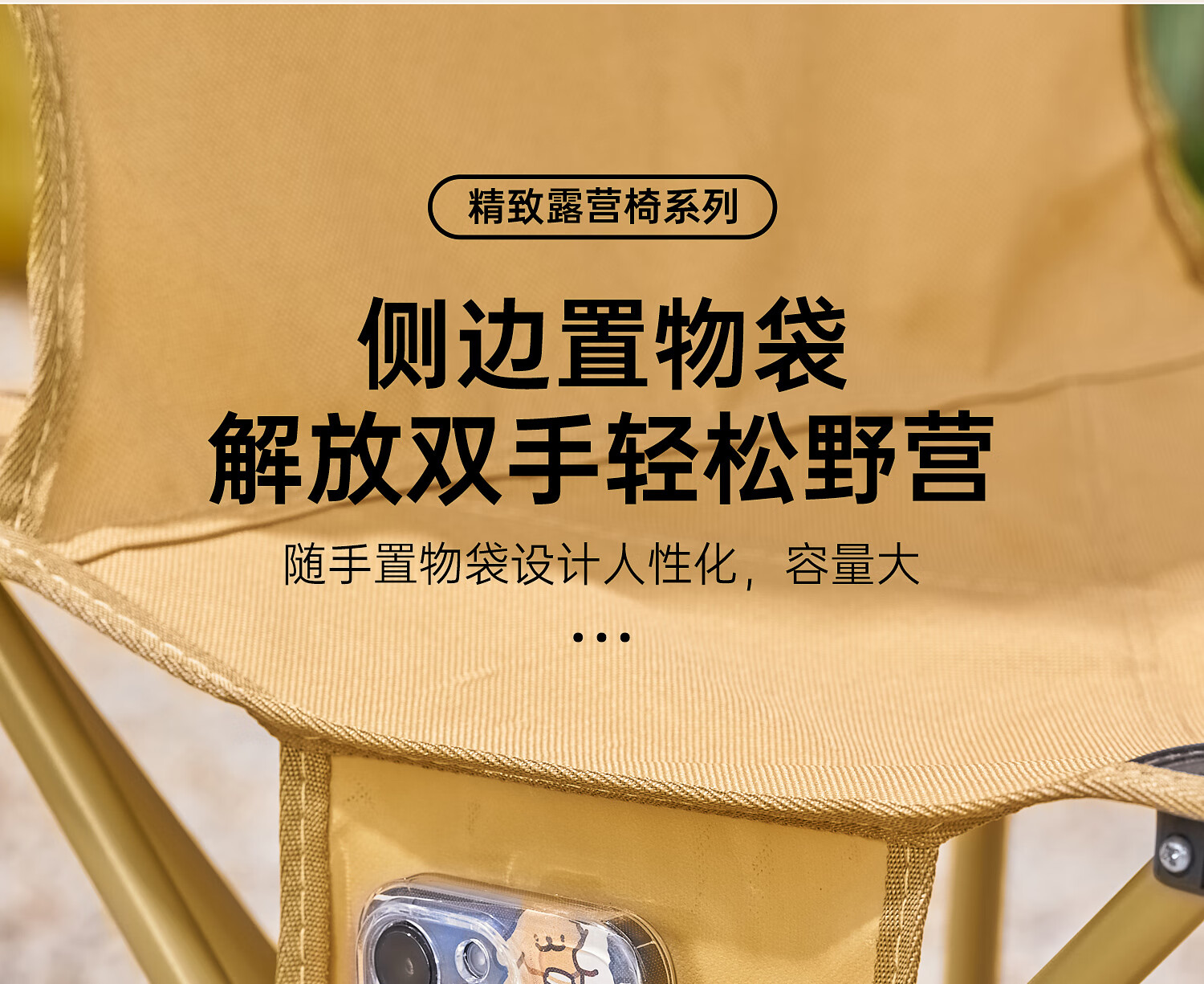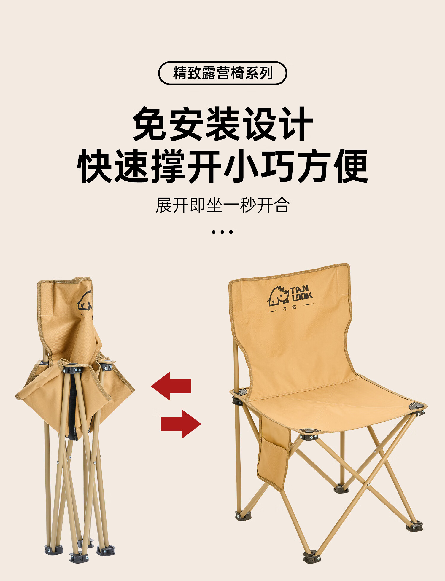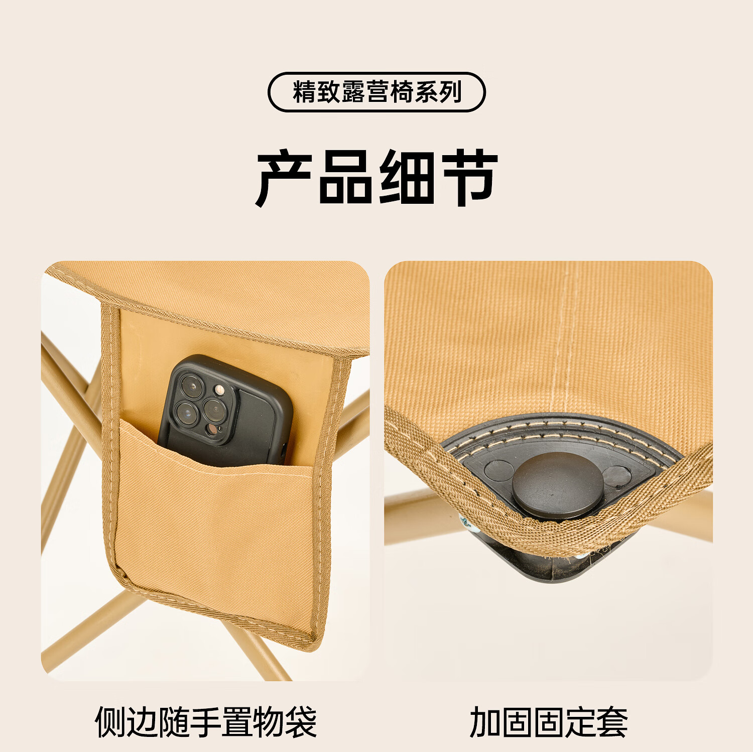 北欢 Bavay户外折叠椅便携式钓鱼轻便铝合金旅游写生小型轻克米特椅 【卡其色】大号承重约240斤