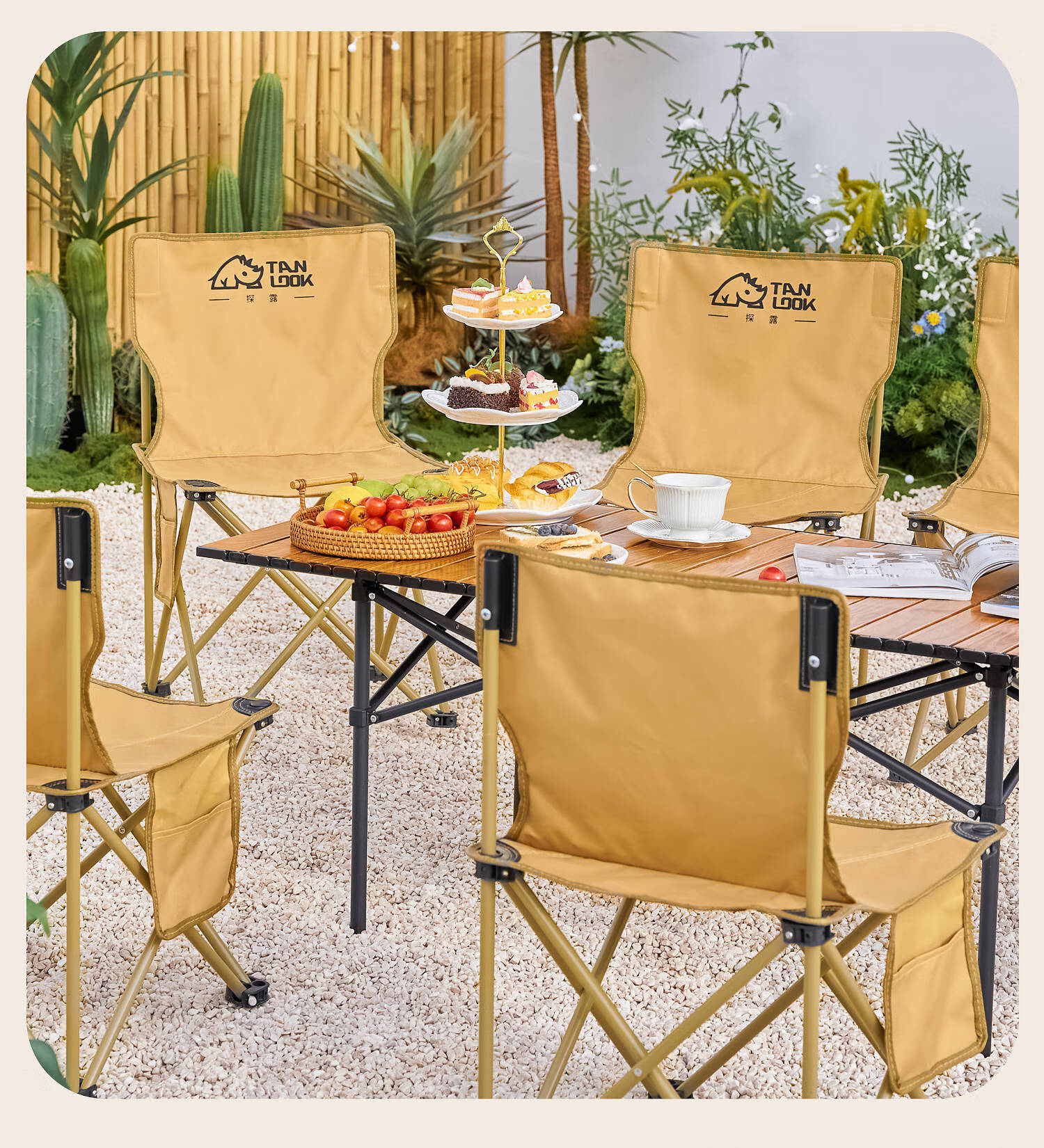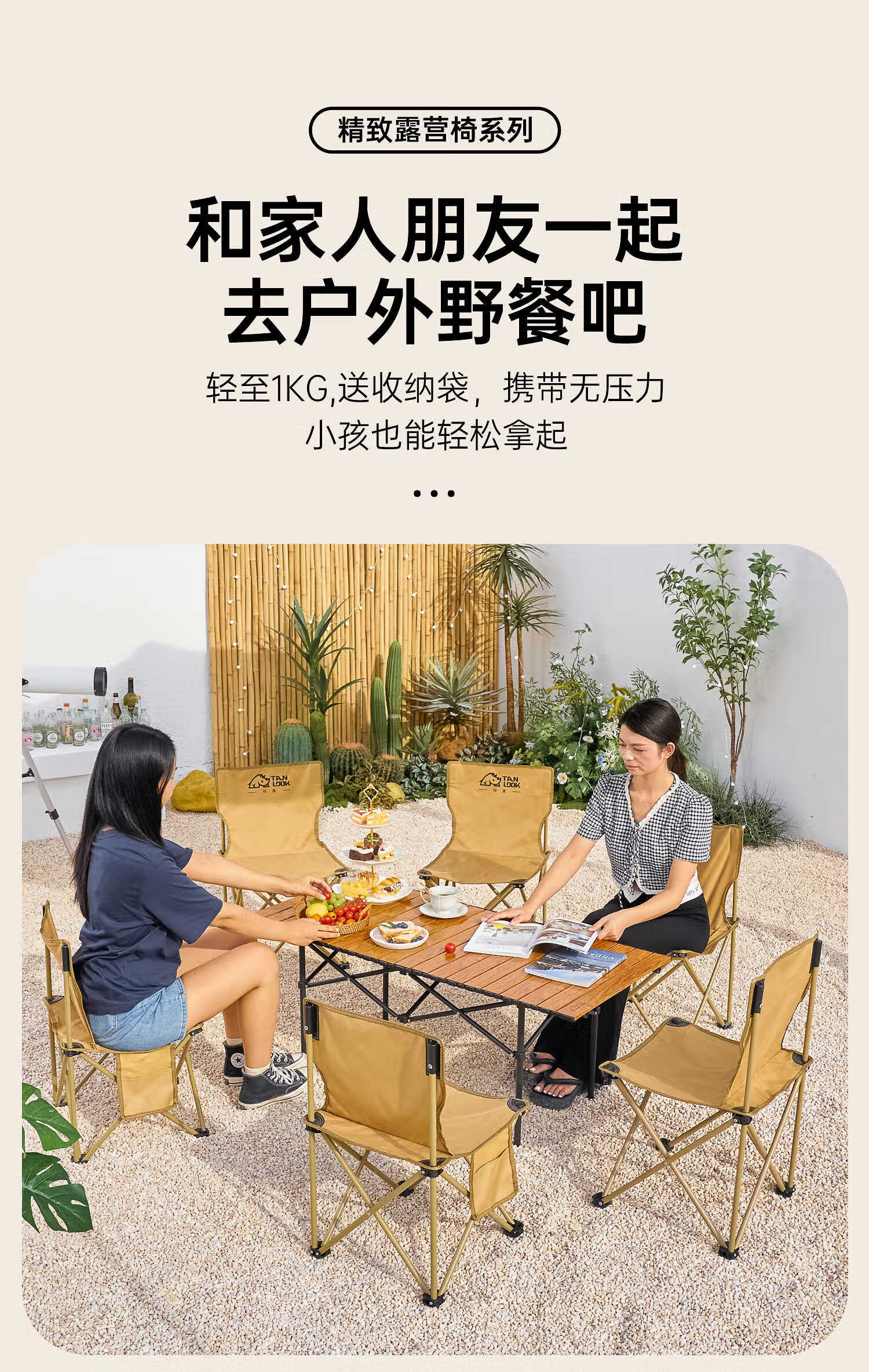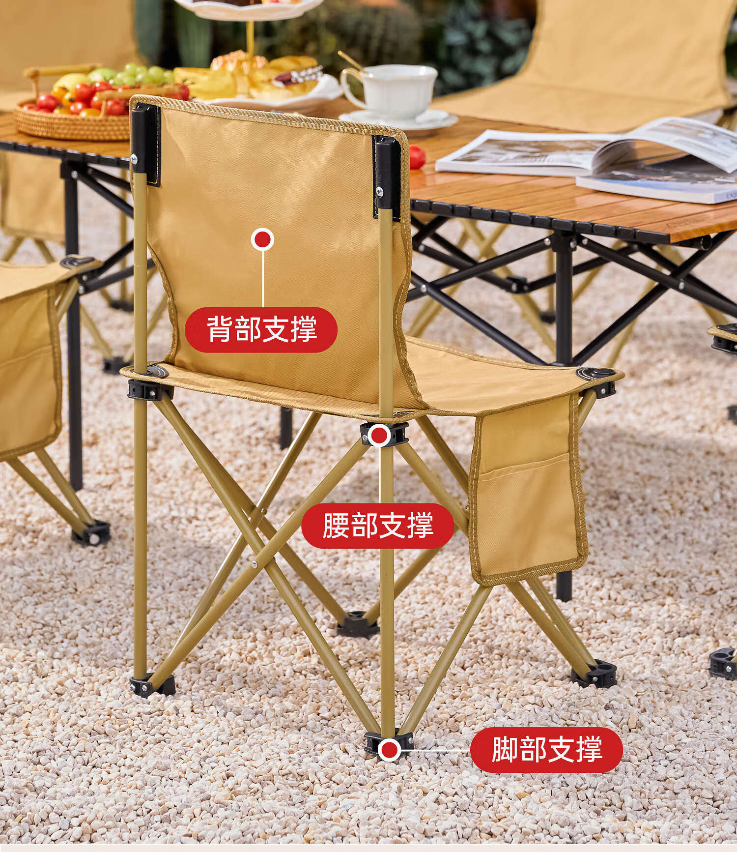 野徒者户外折叠椅子便携式板凳钓鱼椅美术生休闲马扎摆摊露营折叠桌椅子 米黄色【大号桌】 便携露营桌椅