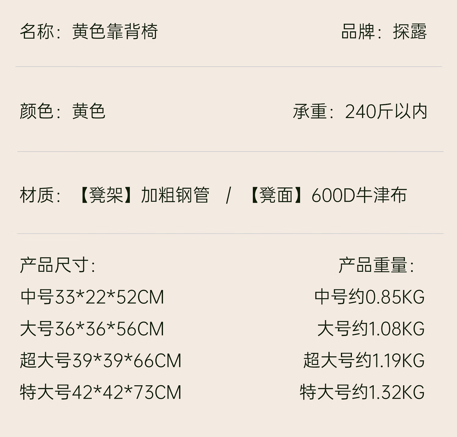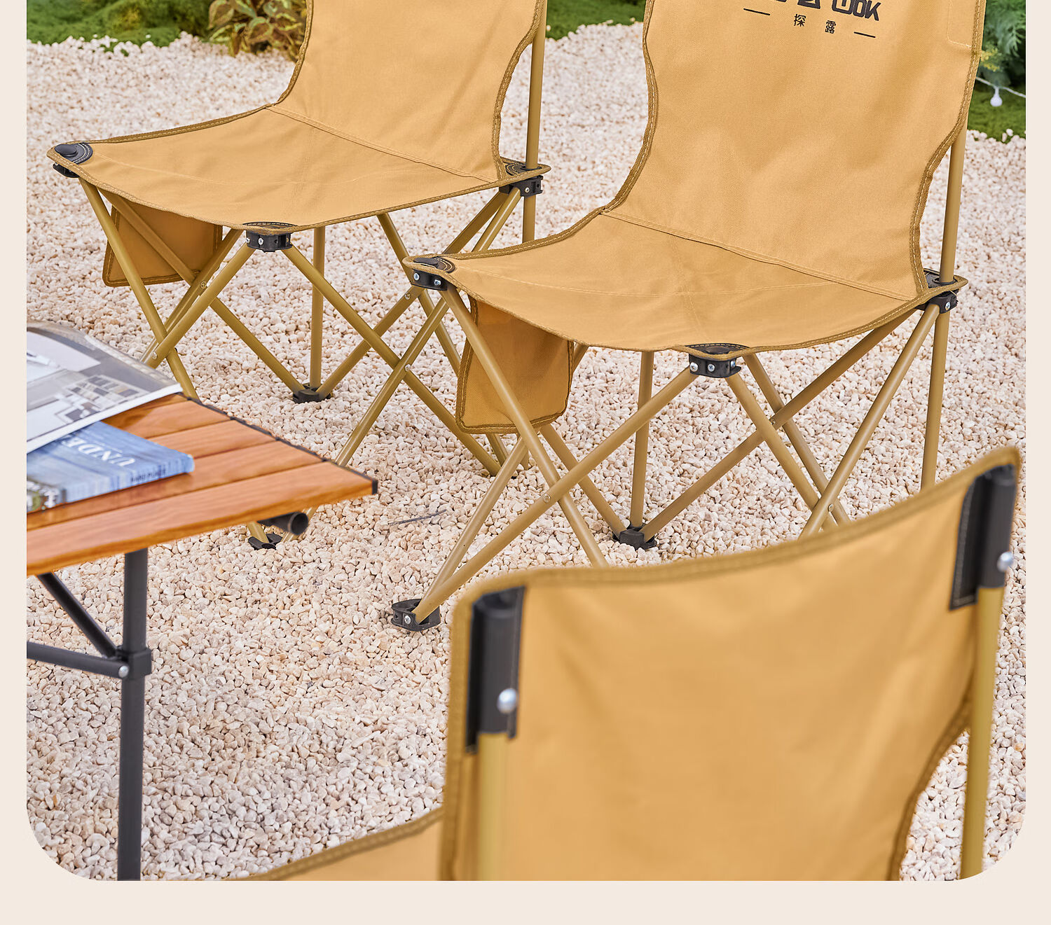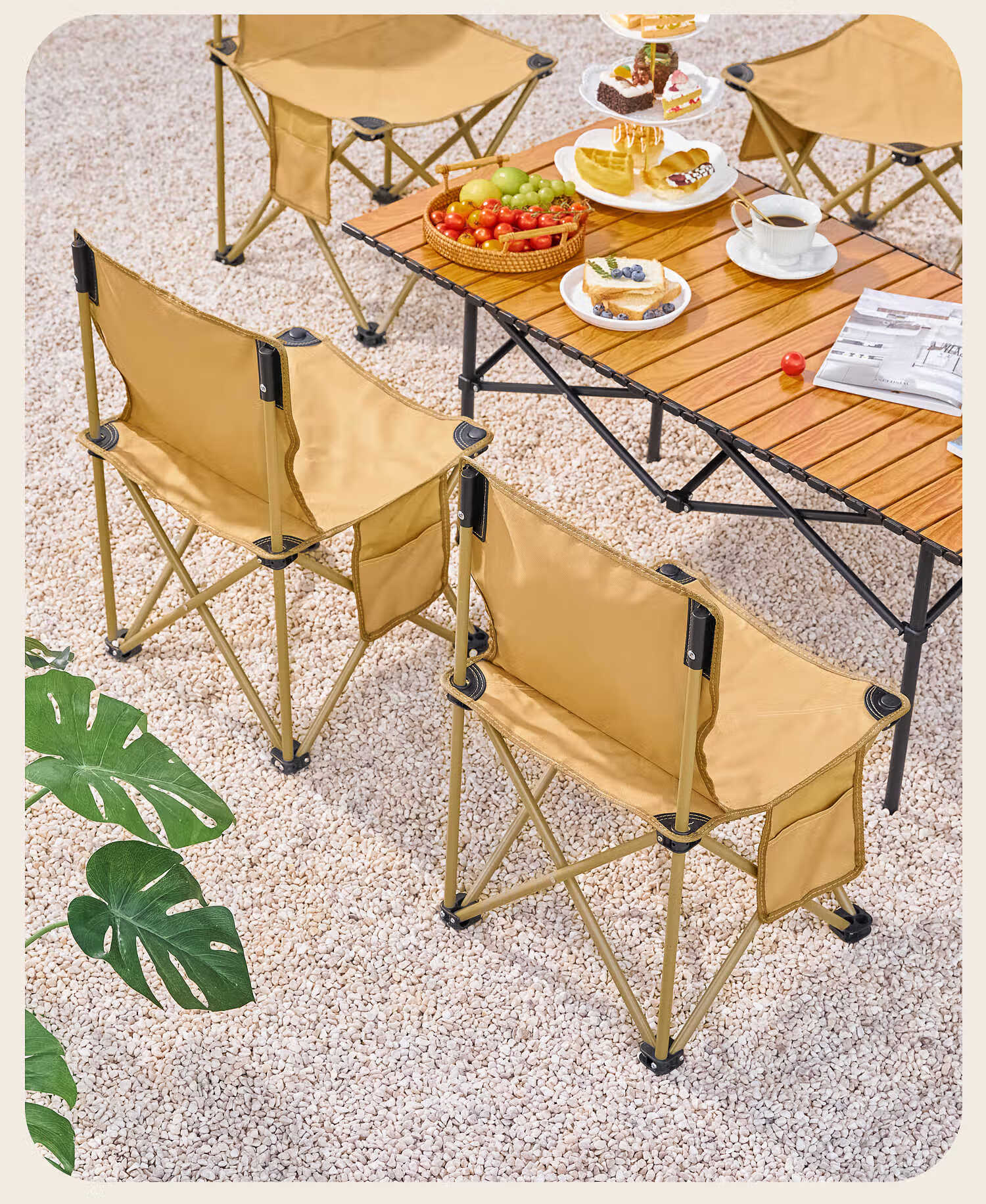 野徒者户外折叠椅子便携式板凳钓鱼椅美术生休闲马扎摆摊露营折叠桌椅子 米黄色【大号桌】 便携露营桌椅