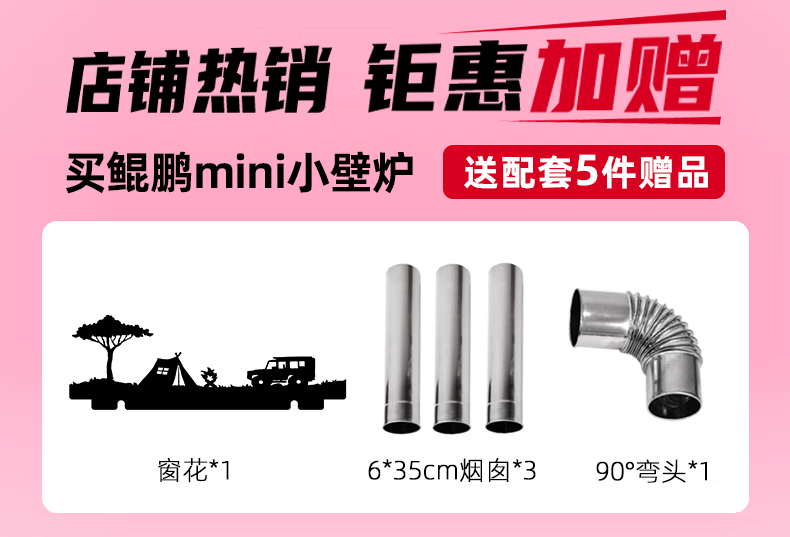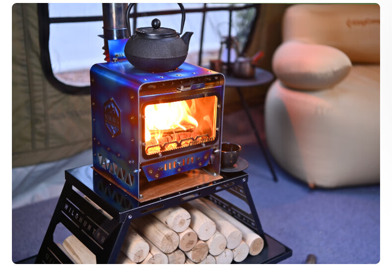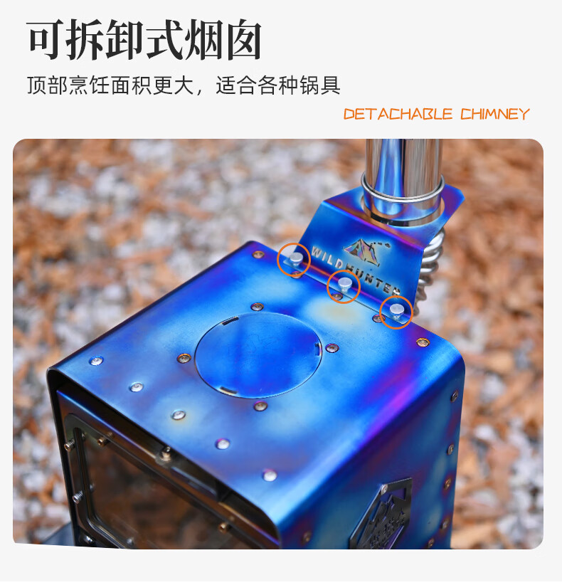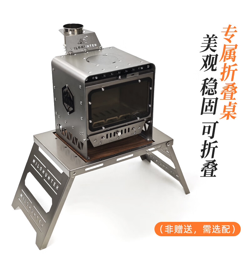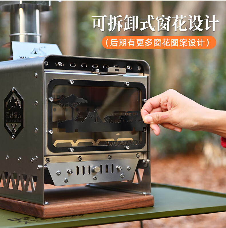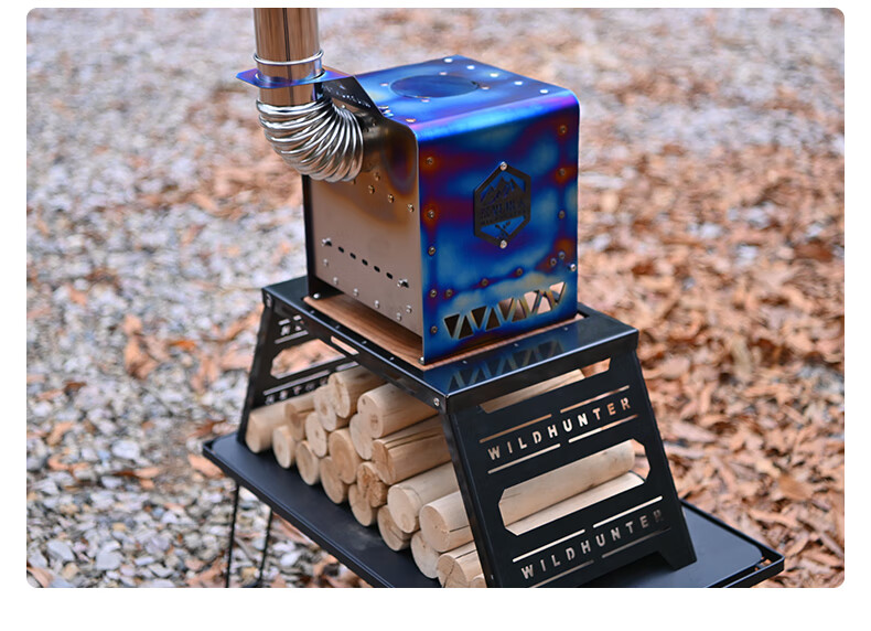 荒野猎人纯钛小壁炉观火户外露营超轻柴火炉帐篷室内取暖野餐炉 (纯钛)鲲鹏mini小壁炉--套餐四
