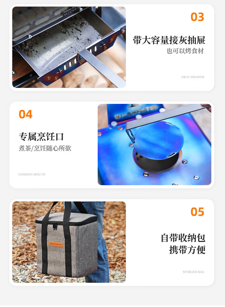 Naturehike挪客赤风轻量钛柴火炉 户外露营便携取暖炉野餐野营围炉烧水煮茶 钛本色