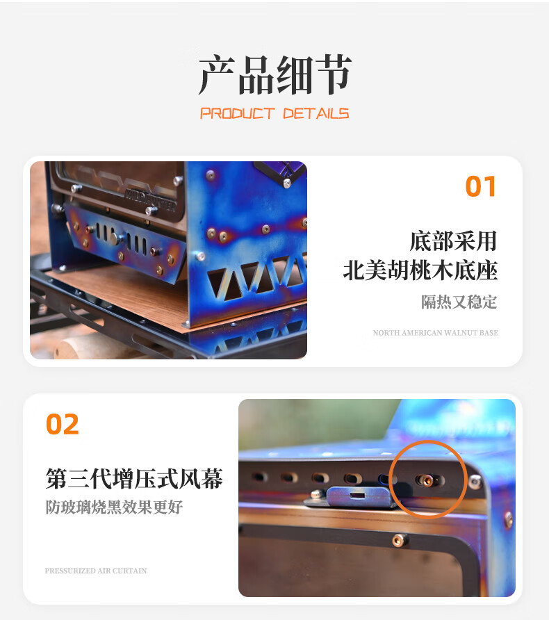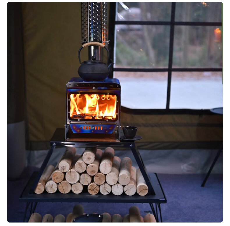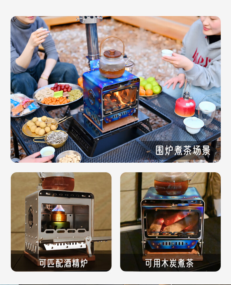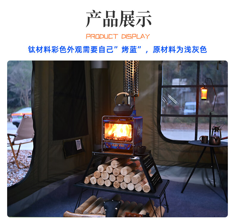 原始人纯钛壁炉取暖野营野餐易燃耐烧篝火便携户外露营取暖器炊具炉具 暖霞钛壁炉【赠加密收纳袋】