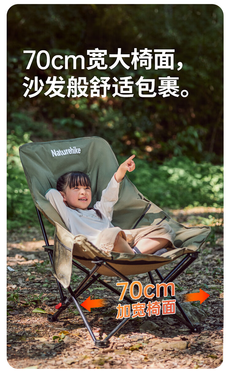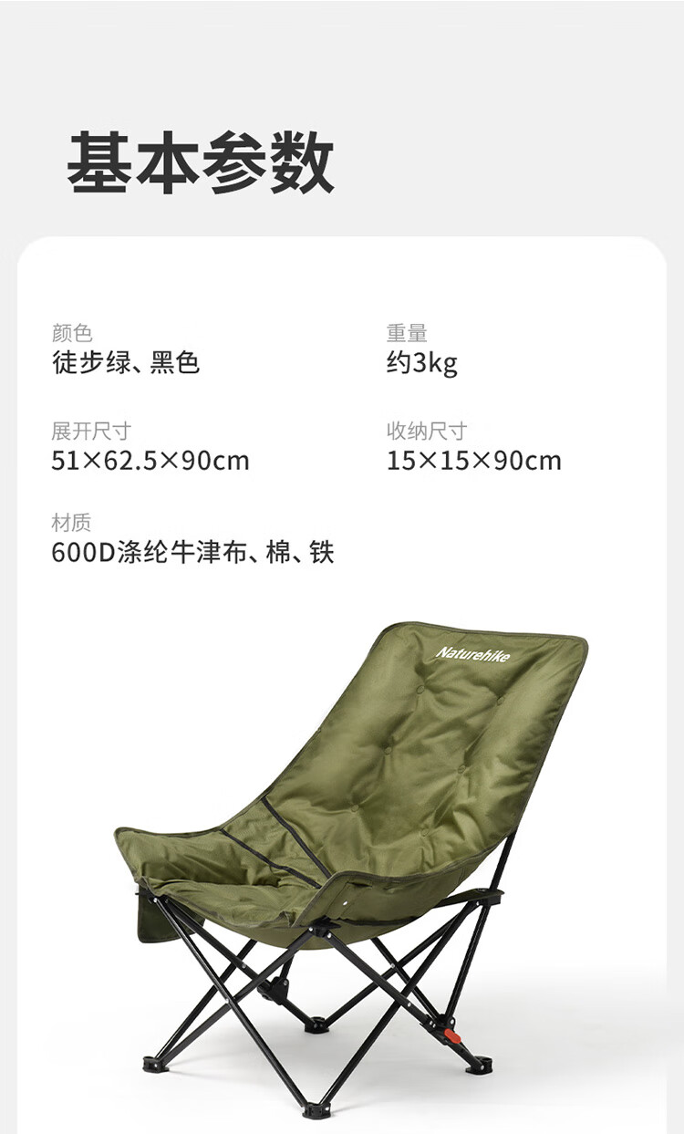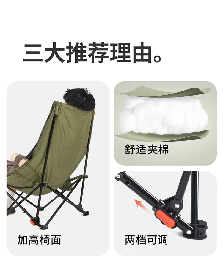 挪客高背月亮椅躺椅户外露营折叠可睡可躺午睡靠背椅懒人钓鱼椅子 徒步绿【 可坐可躺 超宽沙发坐感