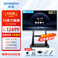 创维(Skyworth)多媒体教学一体机 65/75/86/98/100英寸4K触摸屏视频会议平板显示大屏 【旗舰版】75吋双系统i7+笔+投屏器+推车