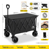 疆屿露营车野营户外折叠手推车野餐摆摊拖斗车儿童可躺超大聚拢营地车 黑色聚拢基础拖斗+碳钢桌面