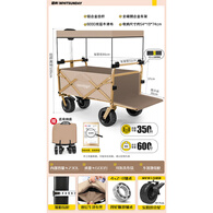疆屿户外折叠露营车儿童可躺摆摊可升降桌野营野餐聚拢双层小推车 卡其轻途高碳钢车架双层牛津布