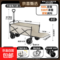 露营车大号手推车后开拖斗可折叠户外营地车儿童可躺野营拖车 【白】后开10寸飞机轮/双轮刹车